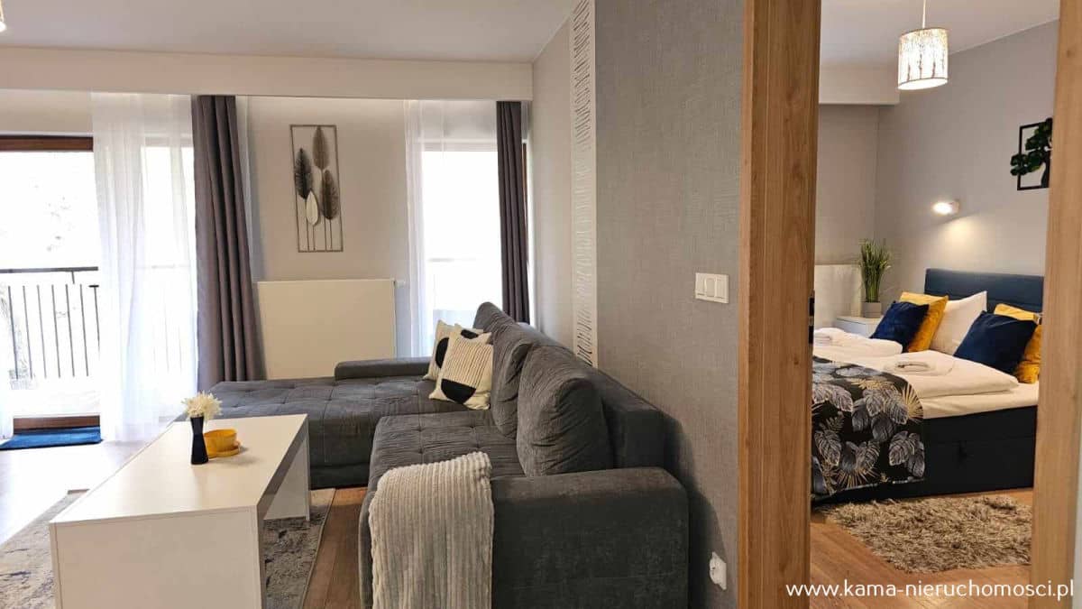Kama Nieruchomości prezentuje Państwu świetny komfortowy dwupokojowy apartament o powierzchni 52.95m2 z tarasem. Usytuowany na drugim piętrze apartamentowca położonego bardzo cichej i spokojnej części Szklarskiej Poręby.