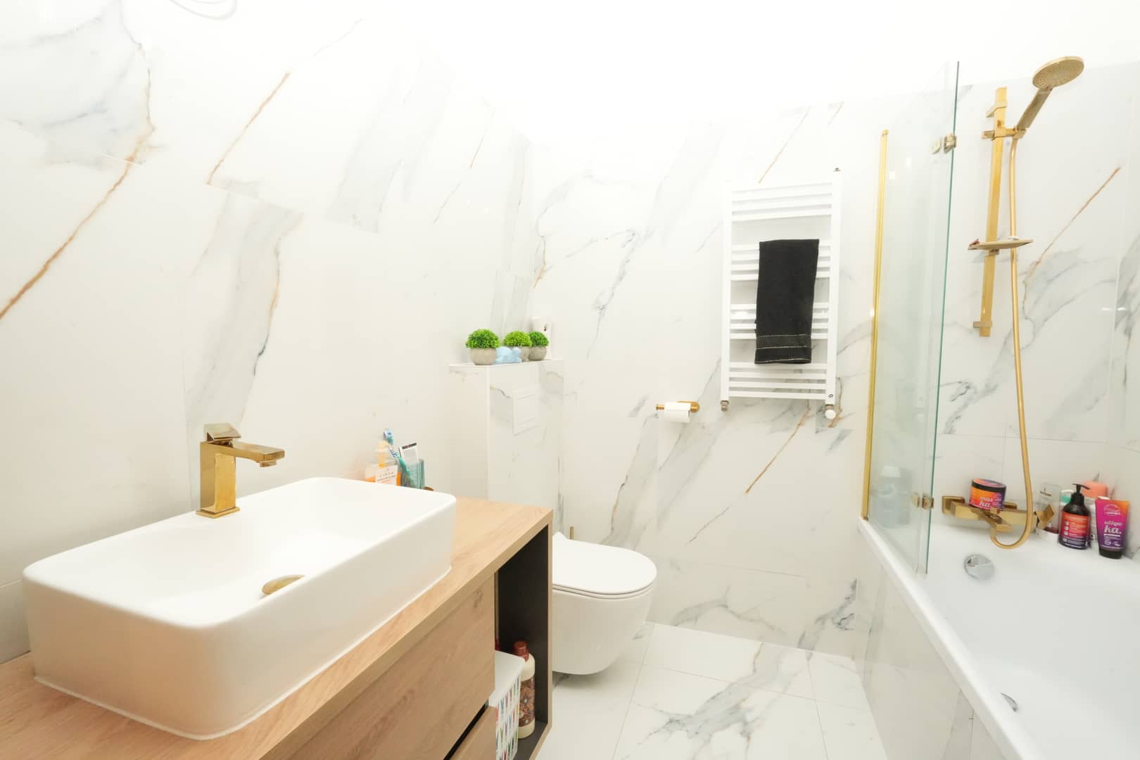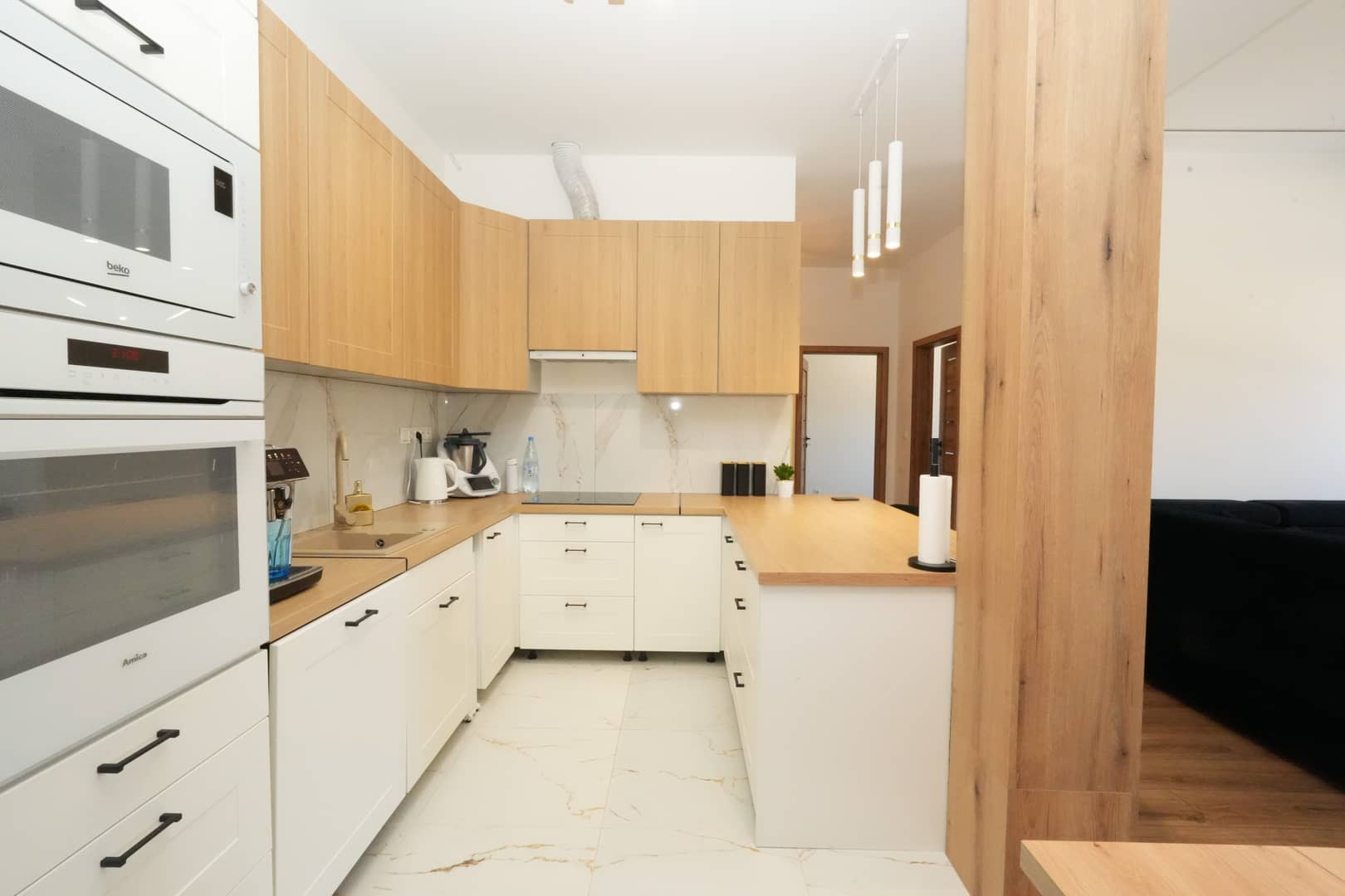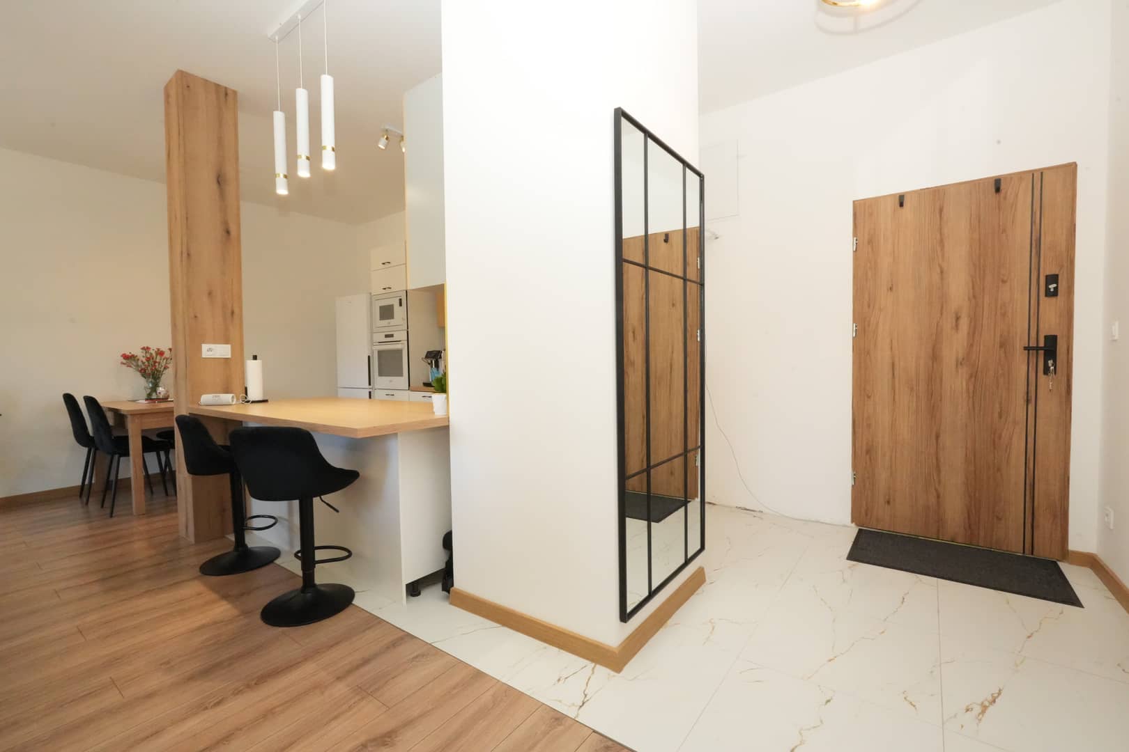 Mieszkanie wykończone z wykorzystaniem wysokiej jakości materiałów oraz z dbałością o detale.