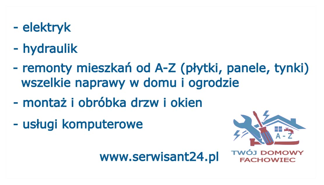 konserwator złota rączka oferuje państwu usunięcie każdej awarii związanej z Elektryką , Hydrauliką , ogólnobudowlane remonty mieszkań pod klucz , ślusarz który pomoże z rozblokowaniu drzwi i wymianą zamków z regulacja drzwi i okien i wiele innych problemów . zadzwoń a na pewno pomogę i wyślę odpowiedniego fachowca . teren Jeleniej Góry i okolic