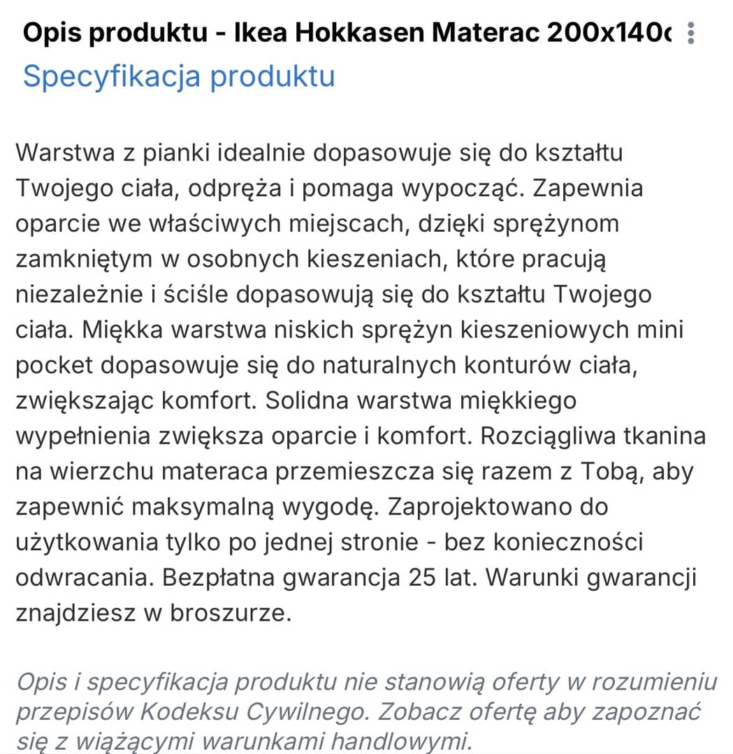 Materac Hokkasen, kupiony w Ikei.