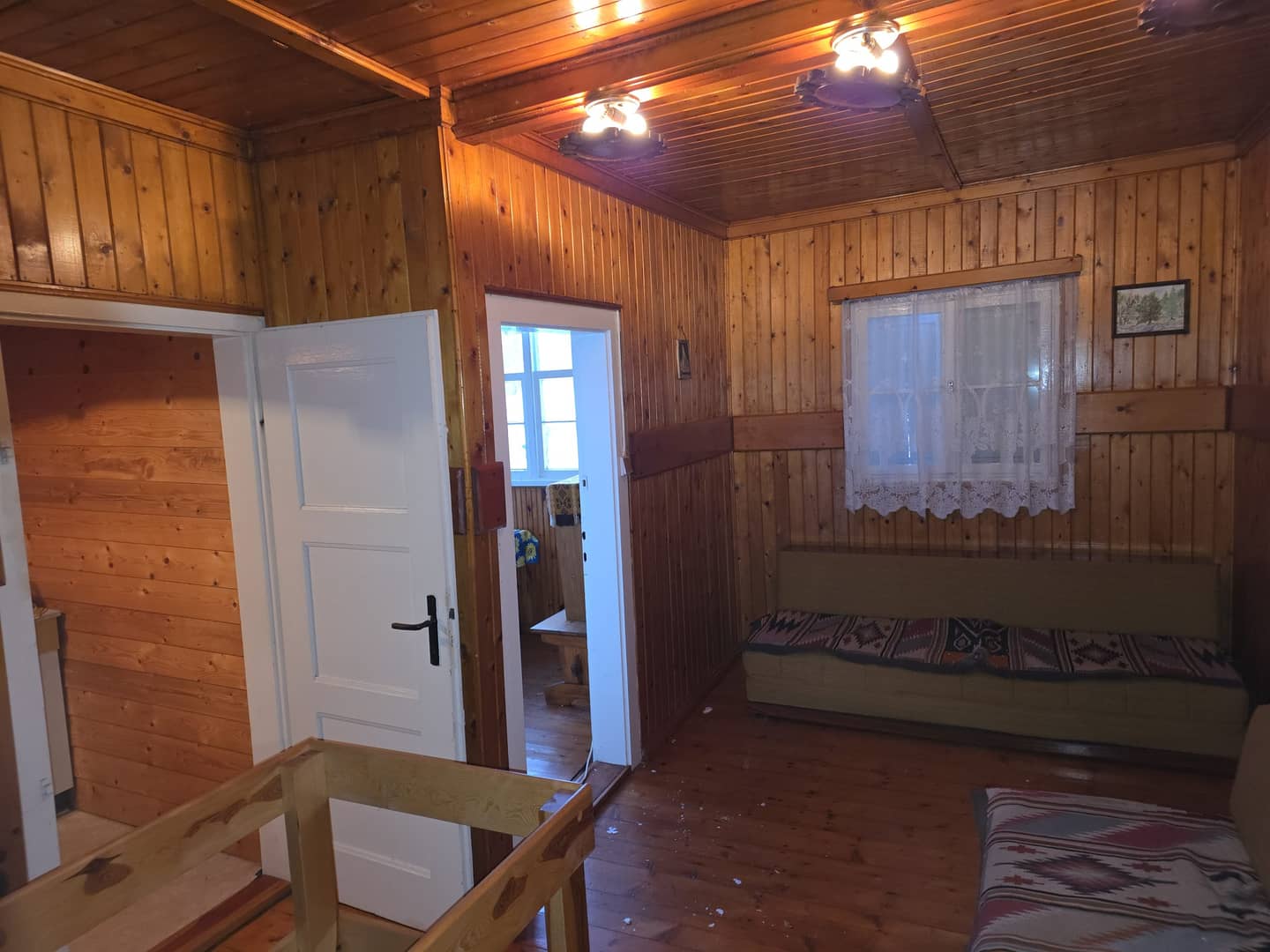 Budynek ogrzewany piecem kaflowym, okna drewniane.