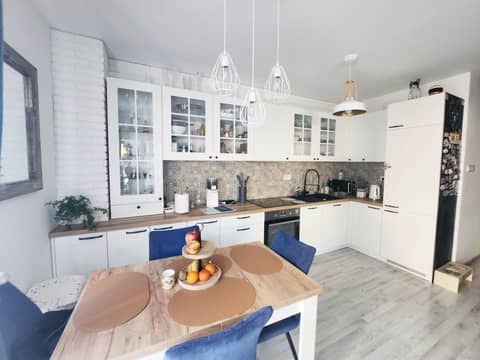 W cenie pozostaje całe umeblowanie w zabudowie, pozostałe wyposażenie - do uzgodnienia.