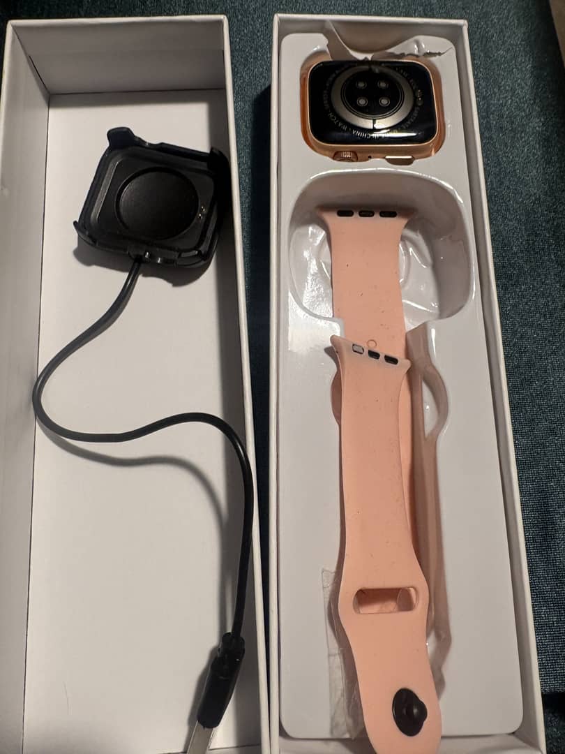 Sprzedam nowy nie używany smart watch 8 sprzedaje z powodu koloru zamiast czarnego przysłali mi różowy zapłaciłem 265 zł odsprzedam za 165 zł folia na wyswietlaczu