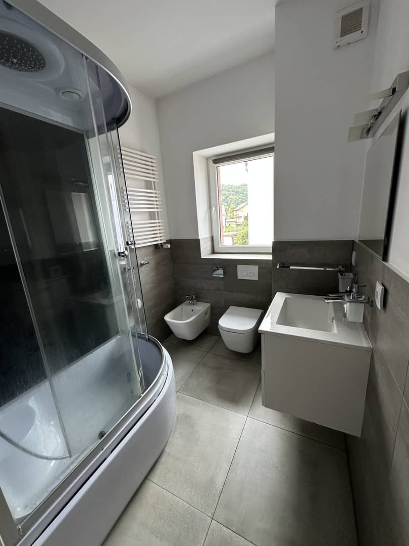 - łazienka z oknem, kabiną prysznicową, bidetem i WC