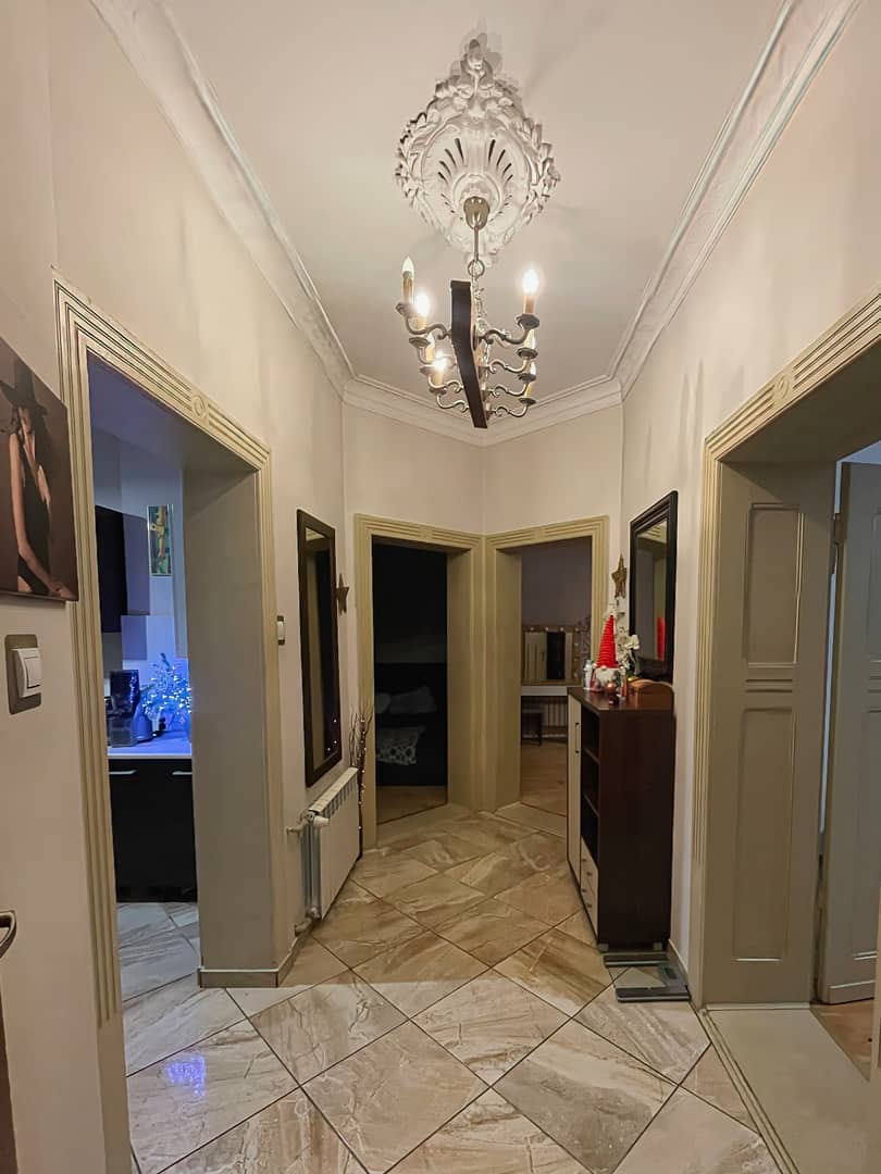 Trzy ustawne pokoje (jeden z wyjściem na balkon), oddzielna kuchnia oraz łazienka z oknem. Zachowane oryginalne drzwi wewnętrzne wraz z ościeżnicami oraz sztukateria . Mieszkanie wyposażone jest w ogrzewanie gazowe z nowym piecem dwufunkcyjnym . Duża piwnica oraz możliwość korzystania ze wspólnego strychu.