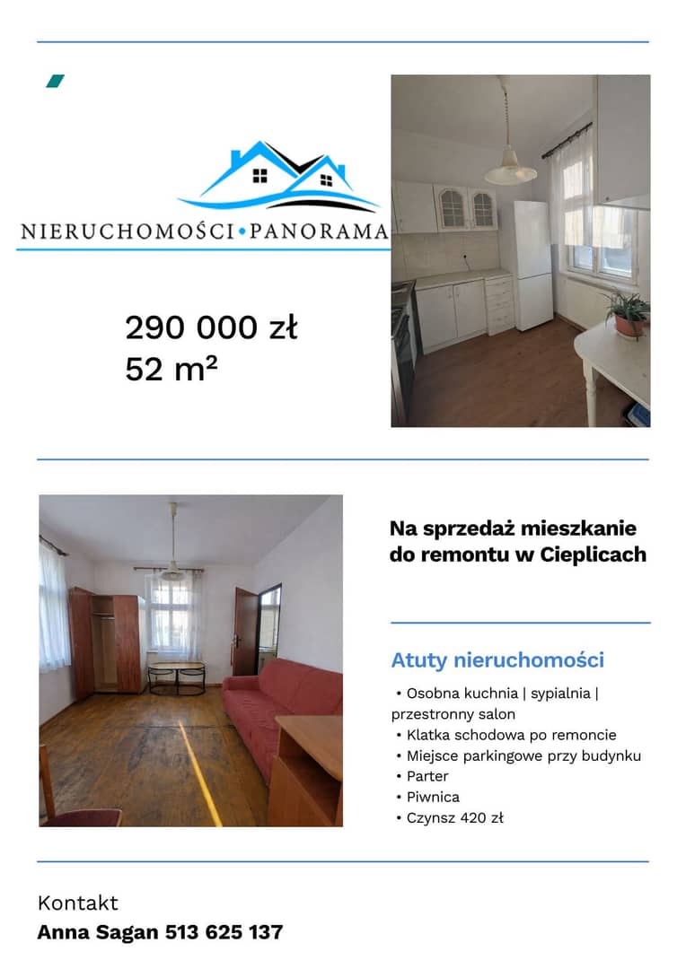 Biuro Nieruchomości PANORAMA ma przyjemność zaprezentować Państwu na sprzedaż mieszkanie w Cieplicach.