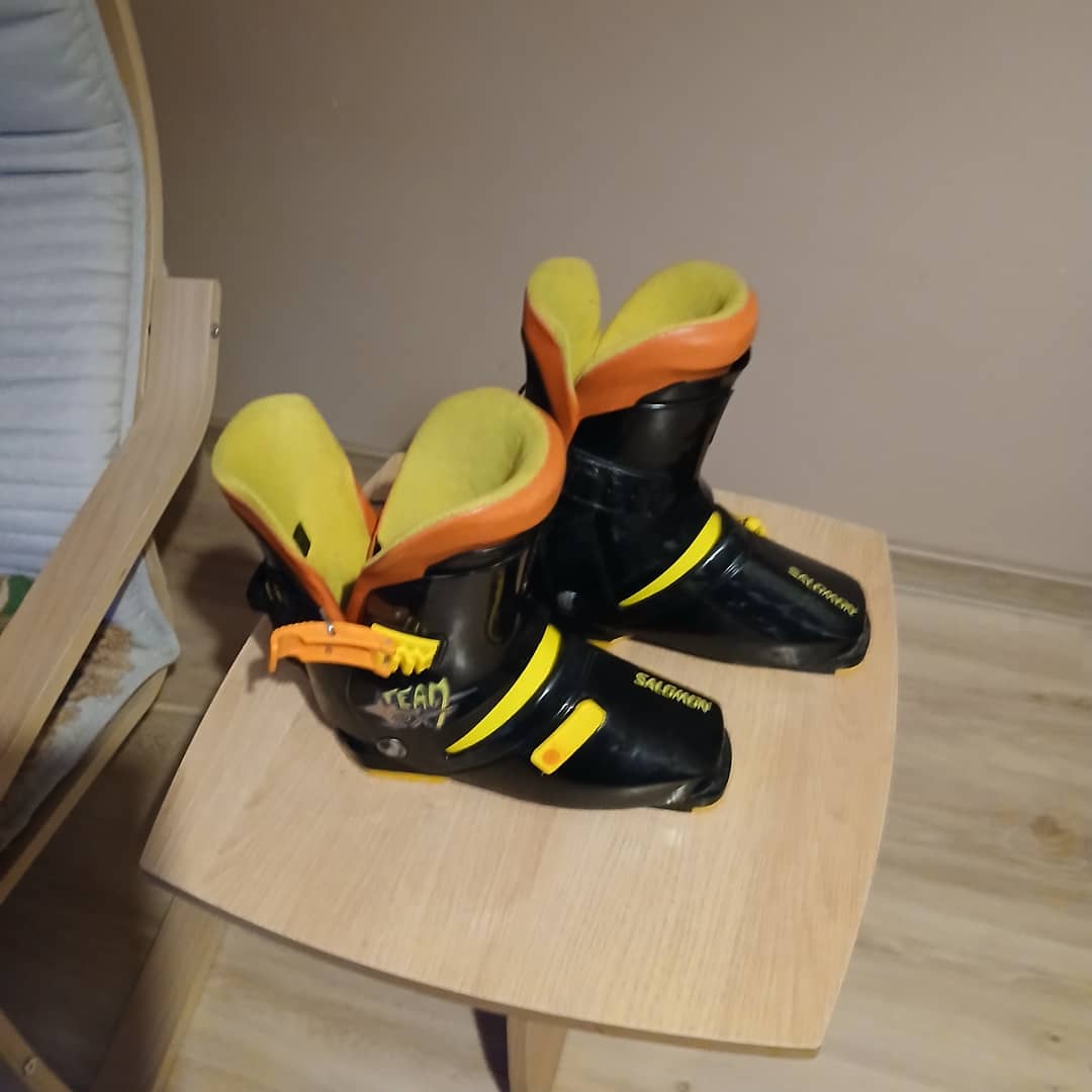 Sprzedam buty narciarskie dziecięce rozmiar 22-22,5 marki Salomon, z lekkimi sladami uzytkowania, stan bardzo dobry cena 100 zł, odbiór własny