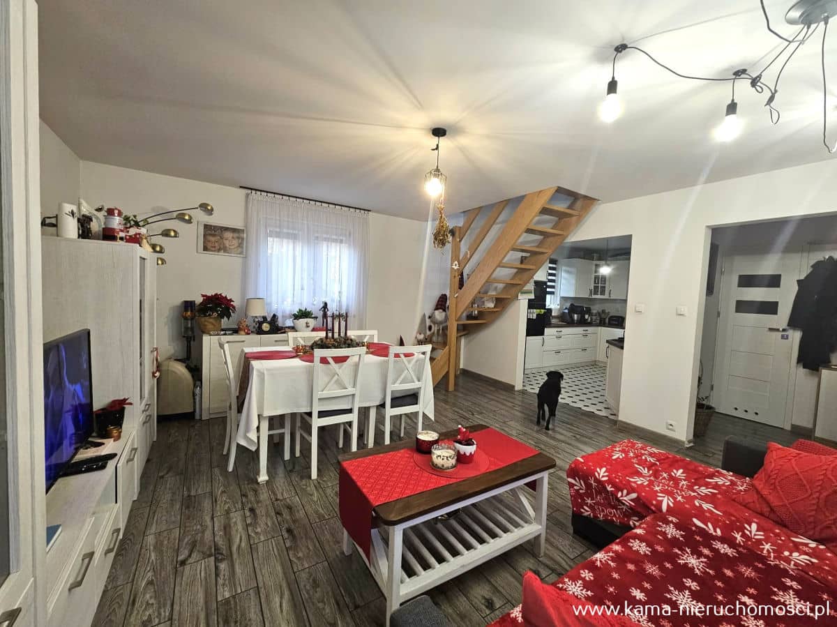 Przestronny z całym umeblowaniem i sprzętem AGD dom o powierzchni 100 m² został zaprojektowany z myślą o wygodzie mieszkańców i funkcjonalności.