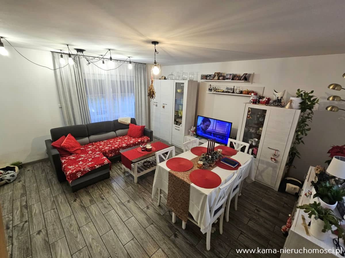 - jasny salon z jadalnią i wyjściem na ogród, idealny na relaks i spotkania