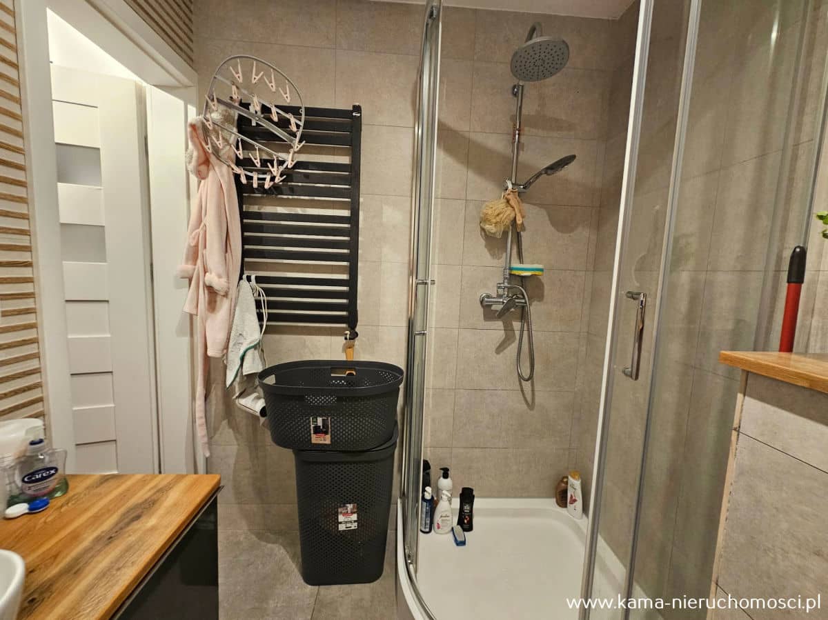 - nowoczesna łazienka z prysznicem i WC