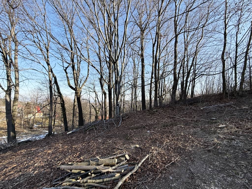 Działka ma nieregularny kształt oraz teren pochyły, co stwarza ciekawe możliwości architektoniczne pod budowę domu lub domków pod wynajem.