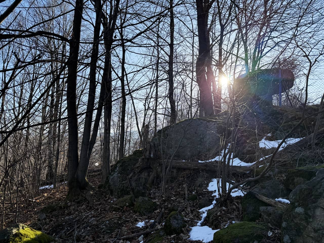 Działka jest zadrzewiona, a obecność skał tworzy unikalny, surowy klimat.