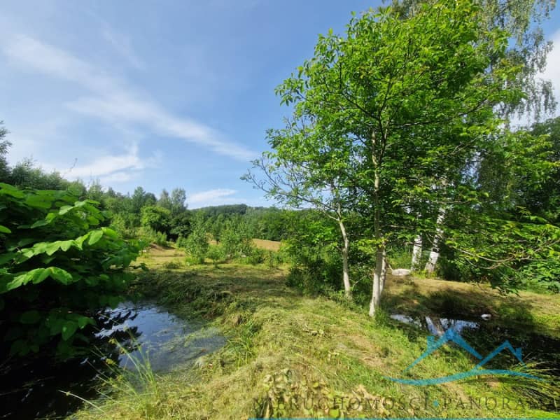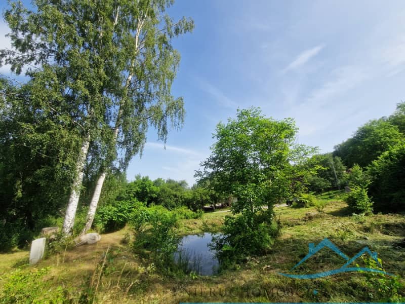 Przez działkę przepływa niewielki strumyk, który idealnie nadaje się do urządzenia oczka wodnego w ogrodzie, w rogu działki znajduje się granitowa skała.