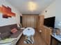 Mieszkanie: duży salon z aneksem kuchennym, duży przedpokój, łazienka, Na wyposażeniu szafa, komoda, narożnik z funkcją spania, fotel jednoosobowy do spania, komoda, meble kuchenne, zmywarka, k