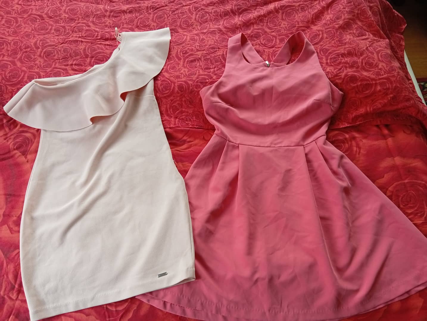 Witam mam na sprzedaż dwie różowe sukienki oraz sukienko spodenki czarne rozmiar między 34 a 36 cena 150 zł