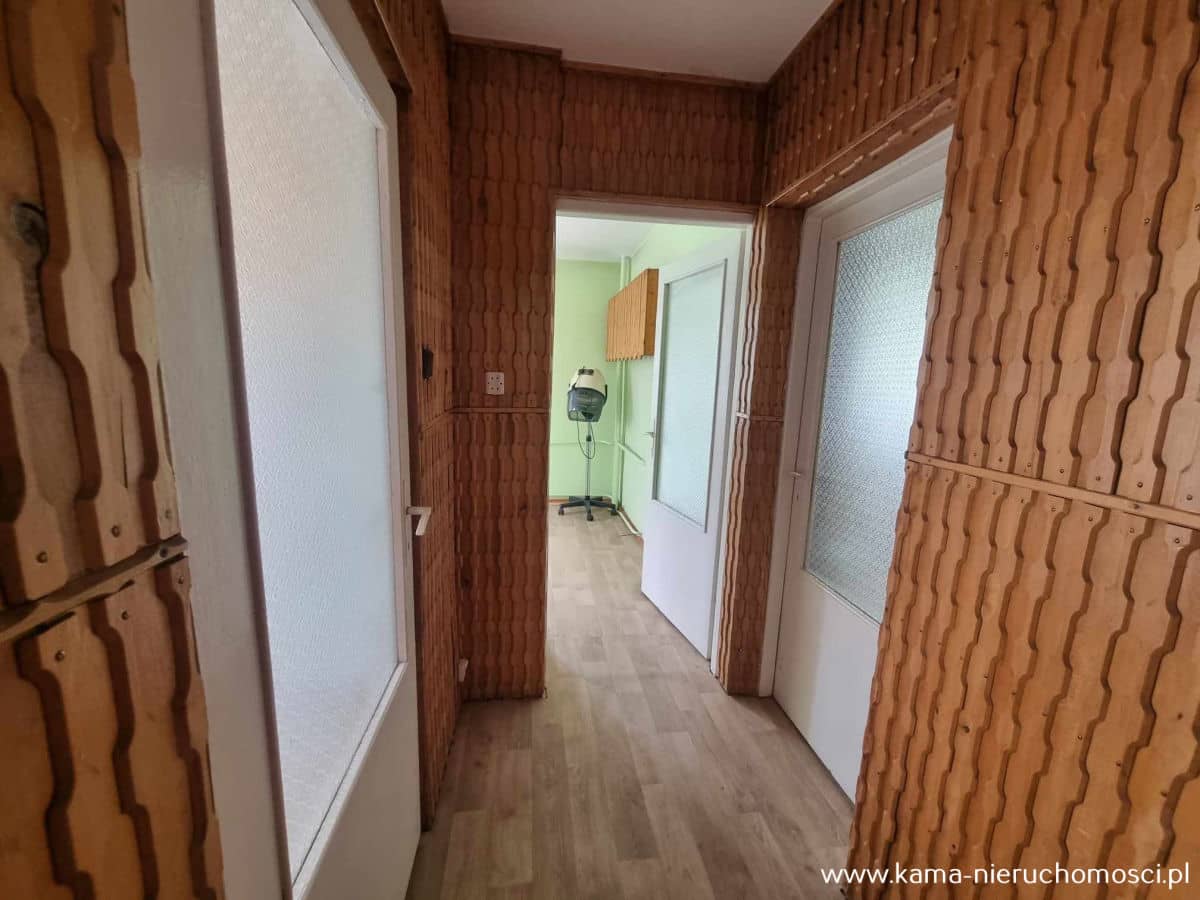 Na podłogach mamy wykładzinę PCV, parkiet oraz płytki.