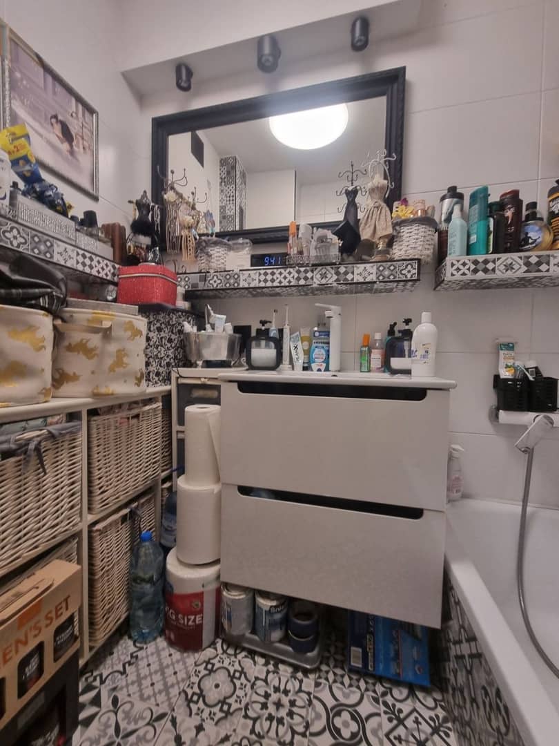 - łazienka wyposażona w wannę, idealna na relaks po ciężkim dniu,