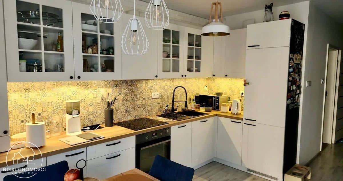 Kuchnia w zabudowie wyposażona w wysokiej jakości sprzęt AGD.
