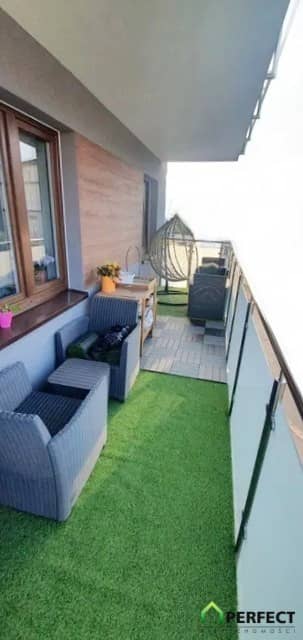 Lokal w pełni wyposażony, nie wymagający żadnych nakładów finansowych. Kuchnia w zabudowie, salon urządzony w sposób pozostawiający sporo przestrzeni, w przedpokoju i sypialni - pojemne szafy w zabudowie. Balkon duży, wyłożony sztuczną trawą, z umeblowaniem w cenie.