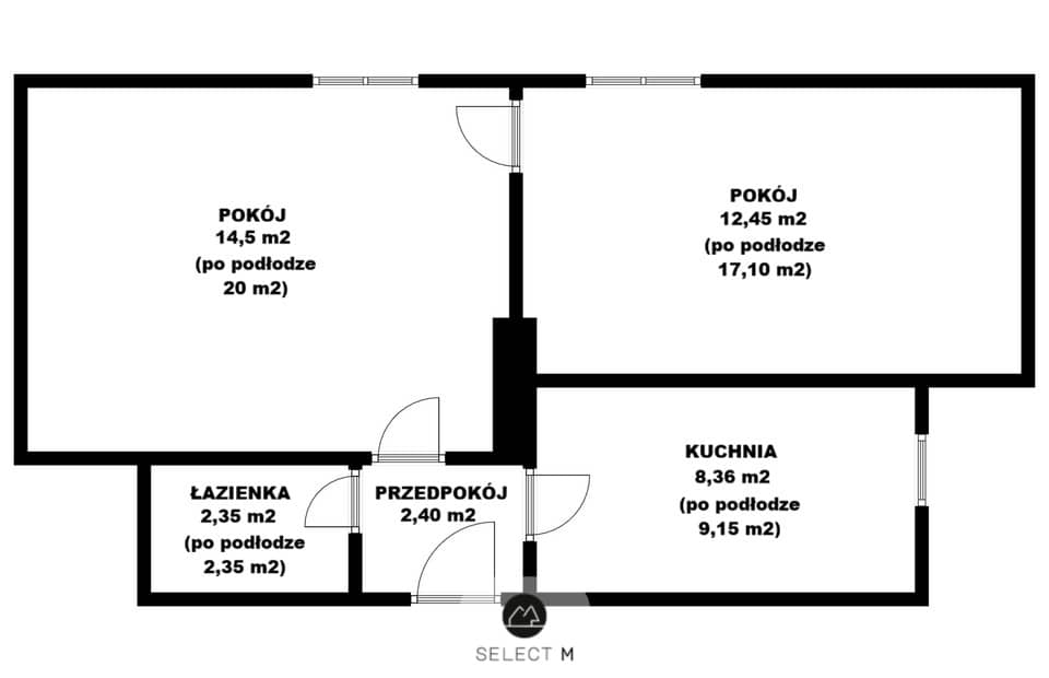 - powierzchnia po podłodze: ok. 51 m²;