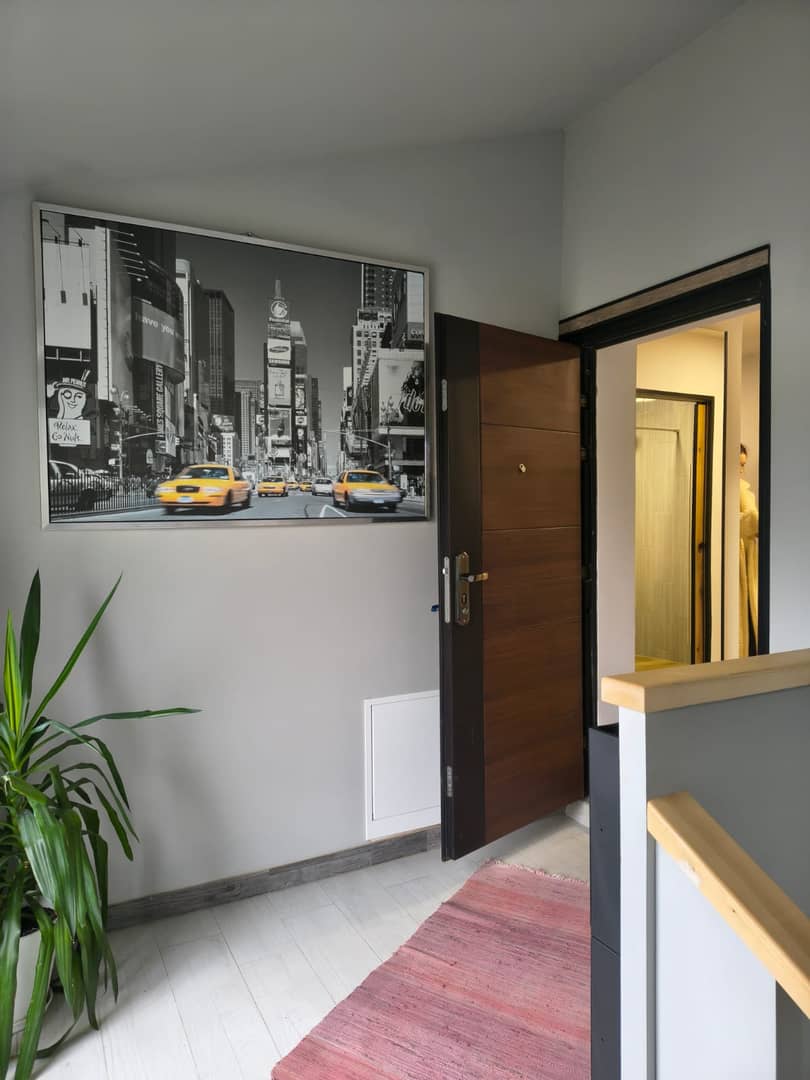 • funkcjonalny korytarz. Położony na drugim piętrze z osobnym wejściem do dwóch lokali mieszkalnych.