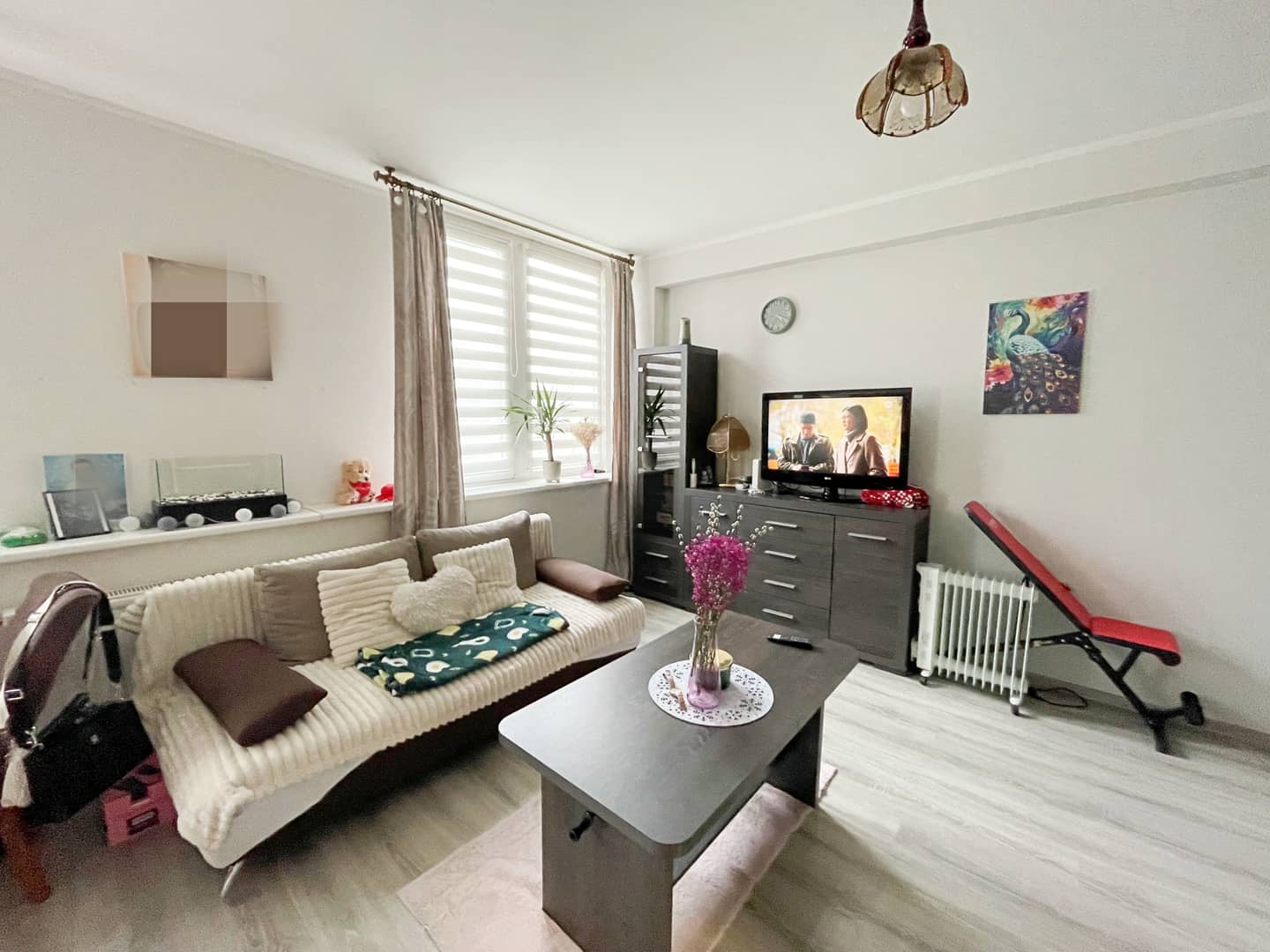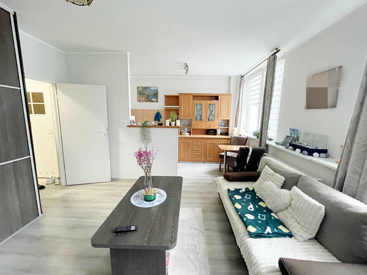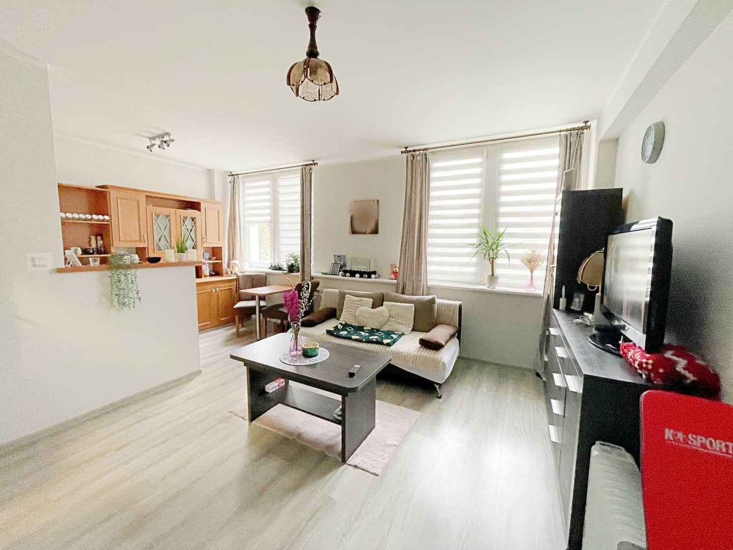 Mieszkanie nie wymaga nakładów finansowych, jedynie do odświeżenia, okna pcv, na podłogach panele i kafelki. Ogrzewanie oraz ciepła woda z sieci lokalnej. Na życzenie możliwość pozostawienia części umeblowania.