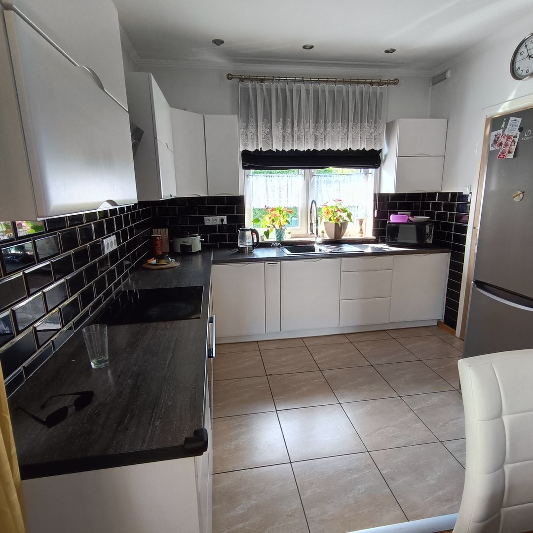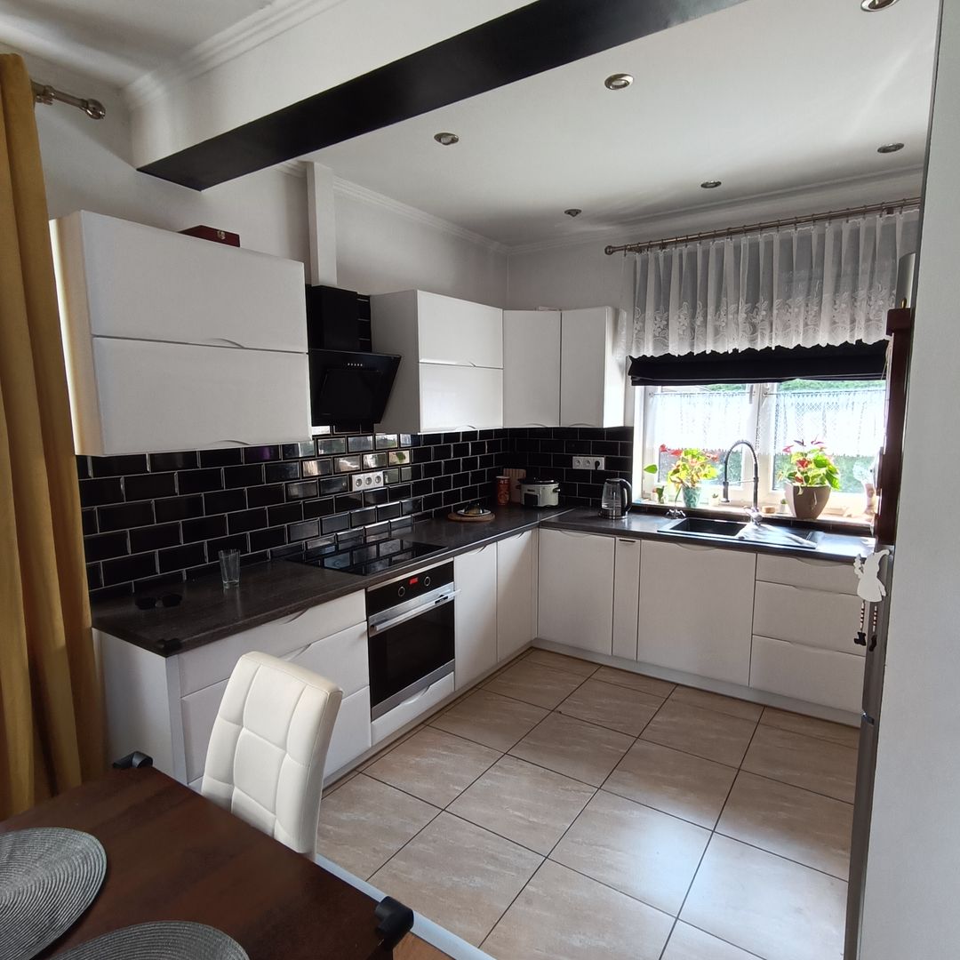Atrakcyjny dom parterowy z poddaszem użytkowym w miejscowości Olszyna. Posadowiony na ładnej działce o powierzchni 1007 m2. Budowany według projektu " Słoneczny", z cegły poroterm, ocieplony styropianem 15 cm, zaciągnięty siatką i klejem, przygotowany do położenia tylku. Dach pokryty dachówką ceramiczną. Powierzchnia całkowita domu wynosi 141,57 m2 w tym użytkowa 115, 67 m2. Peter domu obejmuje przedsionek, przestronny salon z wyjściem na taras i zejściem do ogrodu, tutaj znajduje się również kominek z rozprowadzeniami. Salon otwarty połączony z częścią jadalną oraz wyposażoną i umeblowaną kuchnia, prz której znajduje się pomieszczenie gospodarcze ( obecnie ze schodami na poddasze użytkowe, gdzie mamy ogólnie dostępną powierzchnię do własnej aranżacji na dodatkowe pokoje, łazienkę według własnych potrzeb ). Ponadto w części parteru znajdują się 3 sypialnie w tym dwie z dużymi szafami w zabudowie, łazienka z kabiną natryskową, wanna i wc, osobne wc, korytarz z wejściem do garażu, kotłowni i wyjściem na ogród. Okna pcv, podłogi wyłożone panelami i płytkami w części kuchennej i łazience. Ściany gładzie gisowe, w salonie ozdobna tapeta. Ogrzewanie piecem na paliwo stałe węgiel, drewno, podłogowe w kuchni, łazience i wc, ogrzewany również garaż. Gaz w drodze do przyłączenia ( przygotowana instalacja wyprowadzona z domu). Media to prąd, woda z wodociągu, dodatkowo osobny licznik na wodę ogrodową, kanalizacja. Teren przy budynku zagospodarowany, od frontu wyłożony kostką, część ogrodowa zagospodarowana licznymi kwiatami i nasadzeniami. Panelowe ogrodzenie z przodu działki i siatka w pozostałej części obsadzona tujami. Drewniana wiata na drewno. Dojazd drogą utwardzoną. Dom bardzo gustownie urządzony, przestronny i wygodny, położony na osiedlu domków jednorodzinnych w centrum miejscowości z dostępem do pełnej infrastruktury, czyli sklepów, marketów, przystanku autobusowego i pkp. Dostępna również szkoła. W okolicy znajduje się również jezioro i pobliskie góry Izerskie. Bardzo atrakcyjna oferta z uwagi na położenie i cene która podlega negocjacji. Oferta dostępna tylko w Naszym biurze. Cena 798 000 zł do negocjacji. Serdecznie polecam i zapraszam na prezentację Nieruchomości Rychlewski