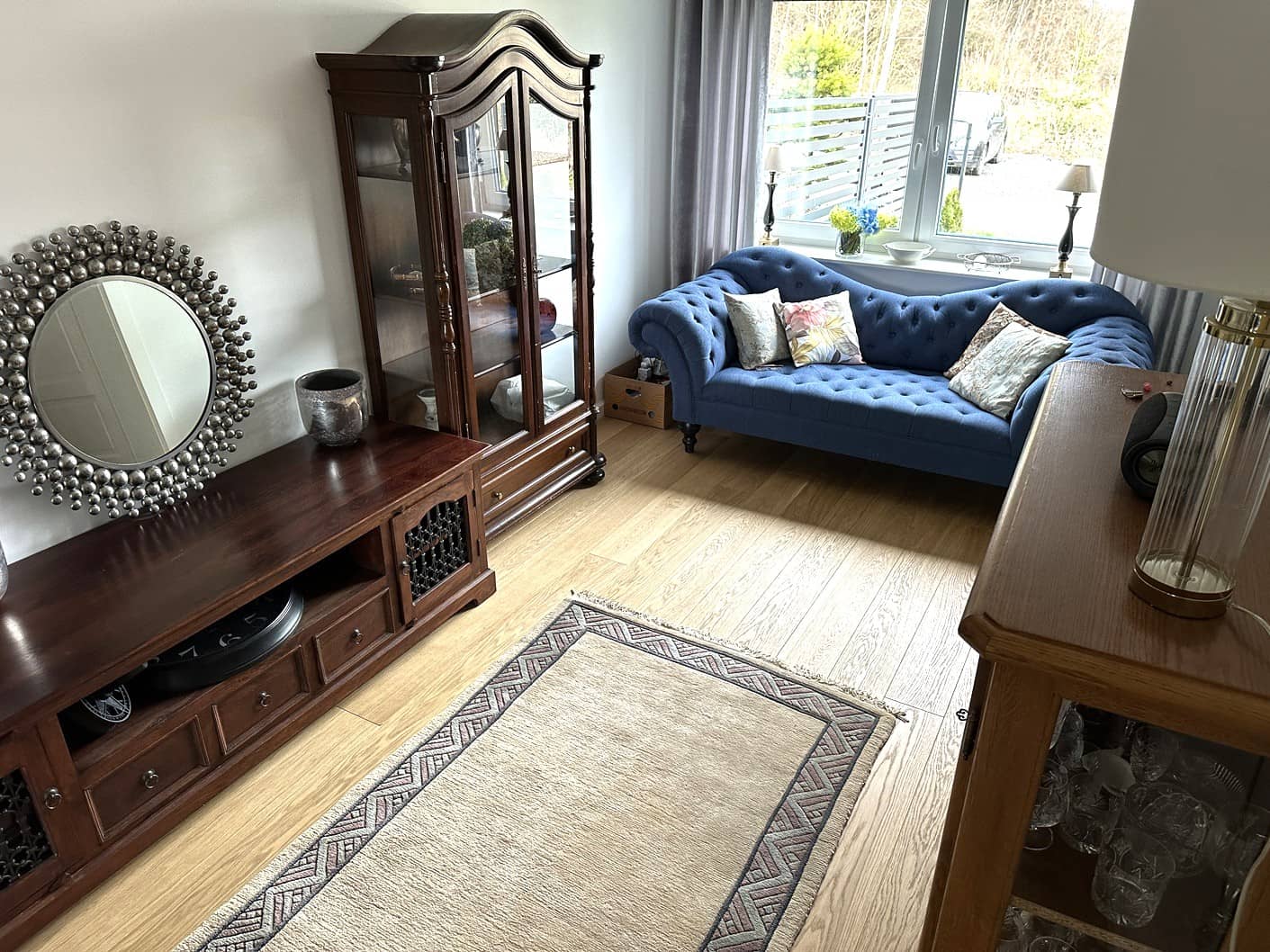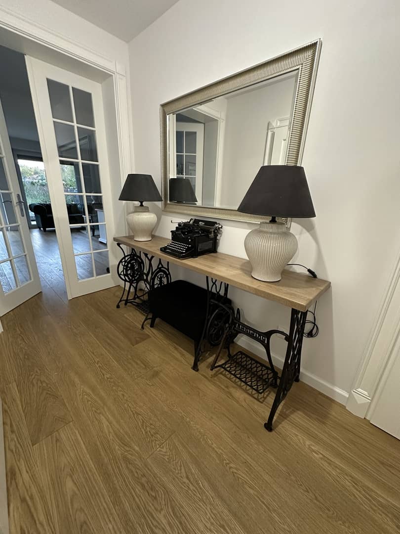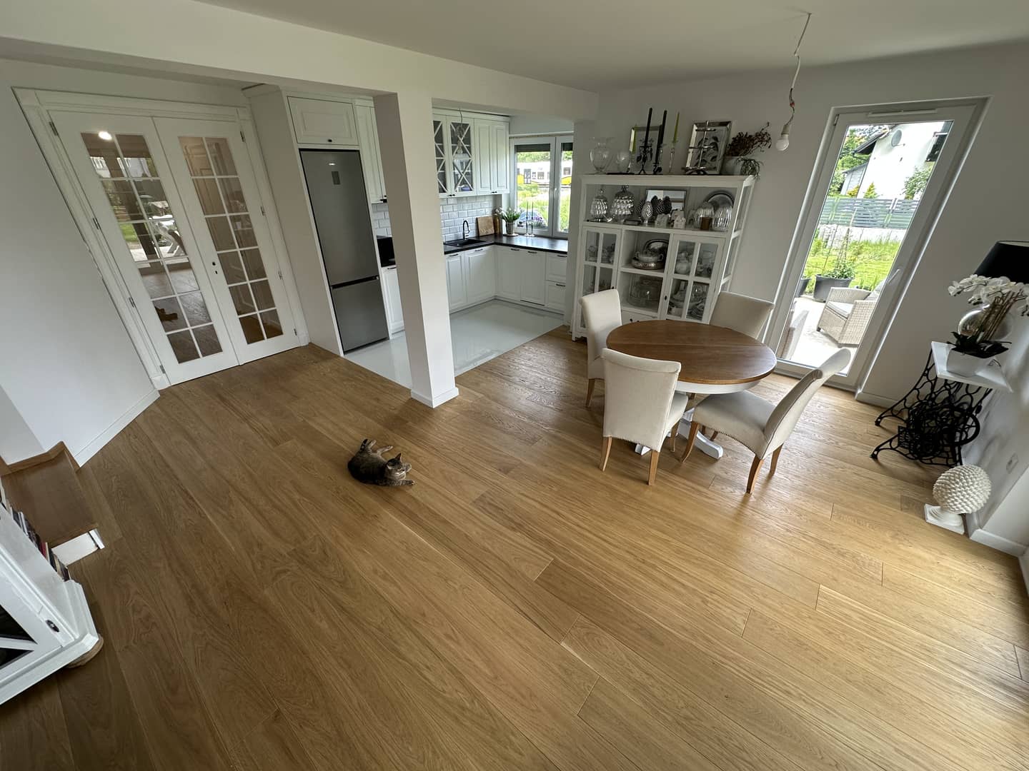- na podłogach w całym domu deska drewniana dębowa