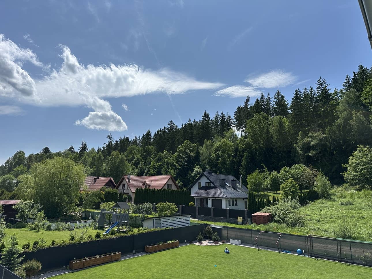 Jednym słowem oferujemy piękną nieruchomość w idealnym stanie, na zamkniętej enklawie domów jednorodzinnych z gwarancją, że w sąsiedztwie nikt więcej się nie wybuduje i nie zasłoni nam widoku.