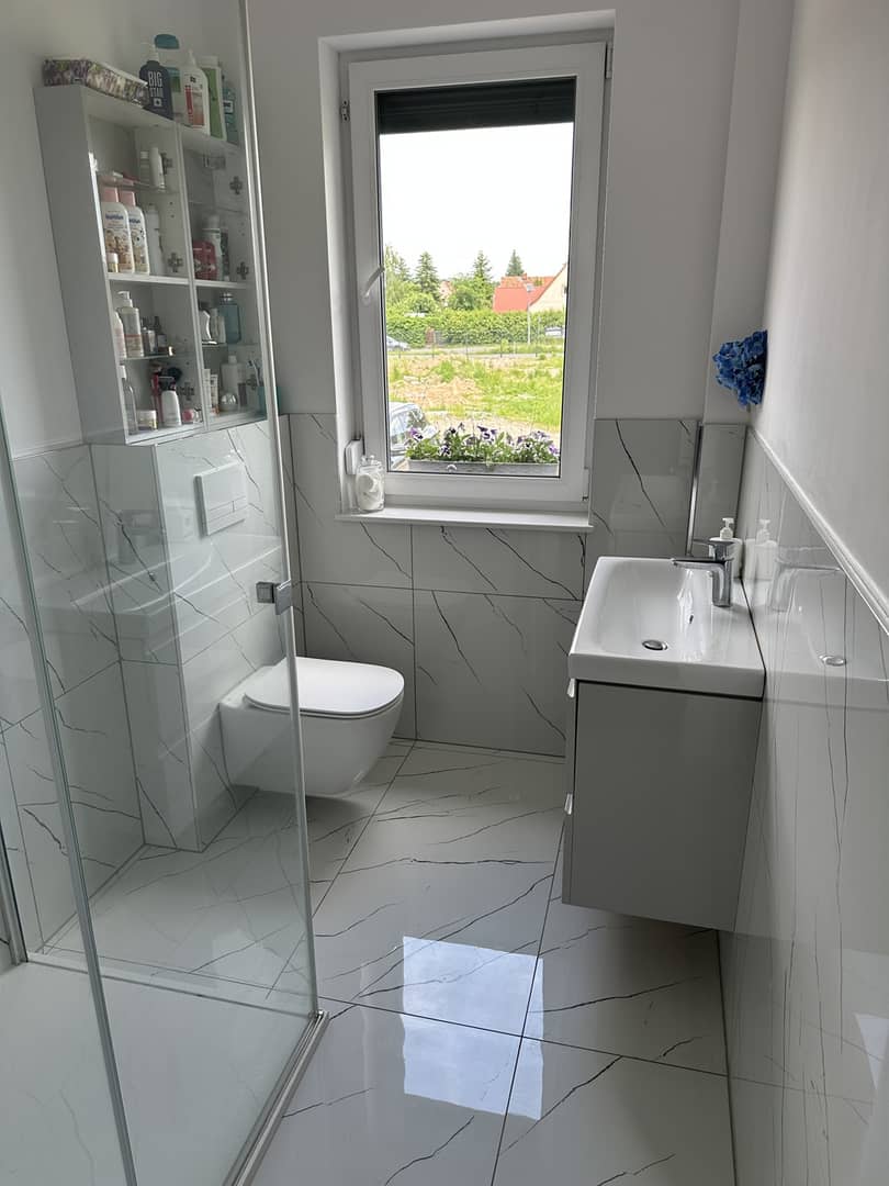 - Łazienka z oknem, kabiną prysznicową i WC 4m2