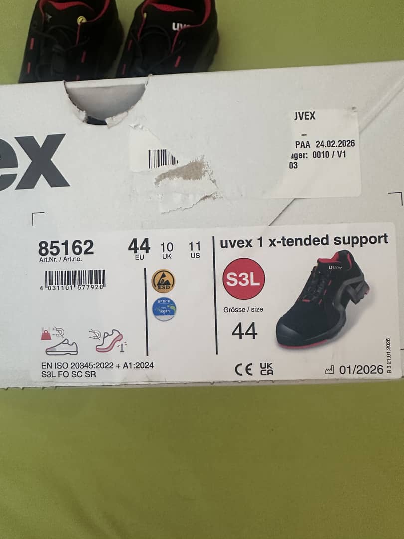 Sprzedam buty robocze Marki UVEX , Nowe , rozmiar 44 , klasa ochronna S3 , model x-tender support, nowe na popularnym portalu są za ponad 500 zł , , moja cena to 90 euro razem z przesyłką czyli poniżej 400 pln . Przesyłka zostanie zrealizowana po otrzymaniu przelewu , Paczka zostanie wysłana z Austrii , buty są nowe , nigdy nie używane, nie uszkodzone, w oryginalnym opakowaniu . kontakt 00436605129549, można też przez Whatsapp posiadam też rękawiczki robocze ochronne HyFlex