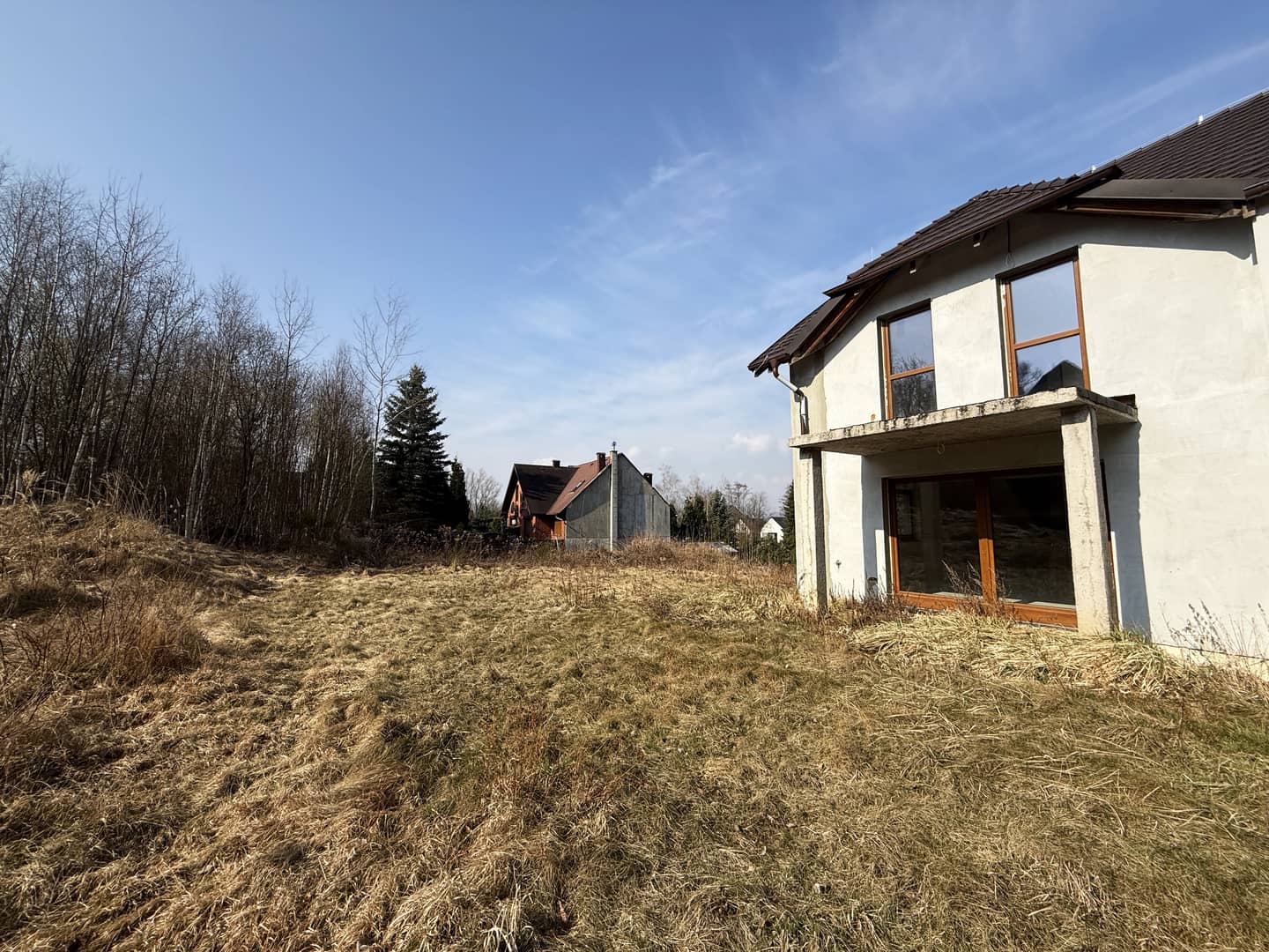 Okna PCV, dach pokryty dachówką karpiówką. Budynek wybudowany z Porotermu, Silki, Ytongu, stropy Terriva.