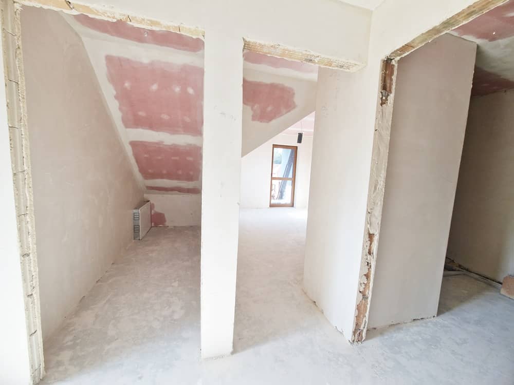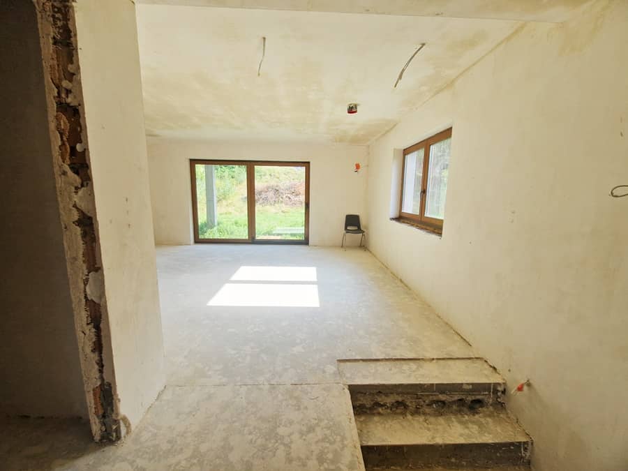 Budynek w trakcie prac wykończeniowych wewnątrz.
