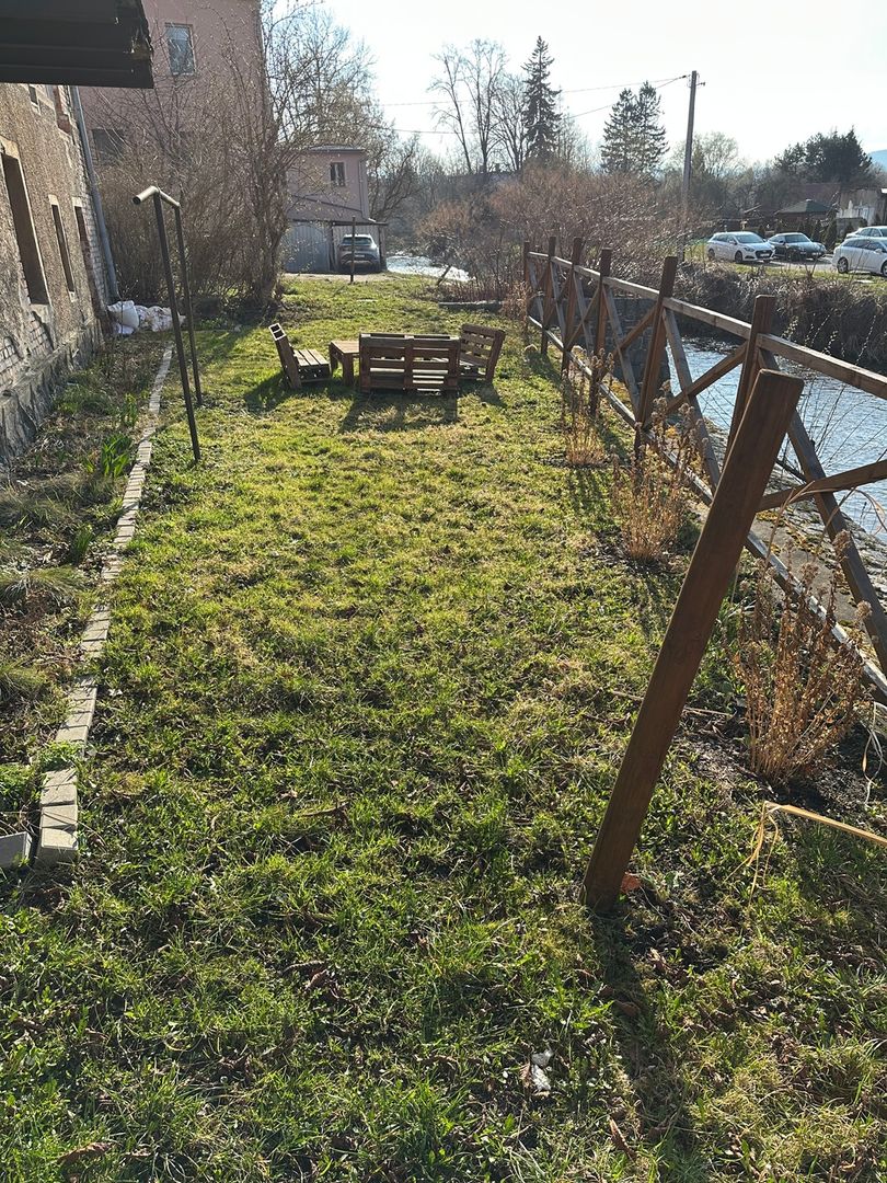 Z tyłu kamienicy jest nieduży ogród nad samą rzeką do wspólnego korzystania dla mieszkańców.
