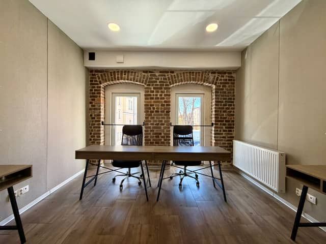 1. Lokal o pow. 13 m2, pierwsze i ostatnie piętro wyremontowanego budynku, czynsz 1050 zł netto- należy doliczyć VAT 23%, czynsz zawiera media oraz sprzątnie części wspólnych. (na zdjęciach lokal za cegłami i szary budynek)