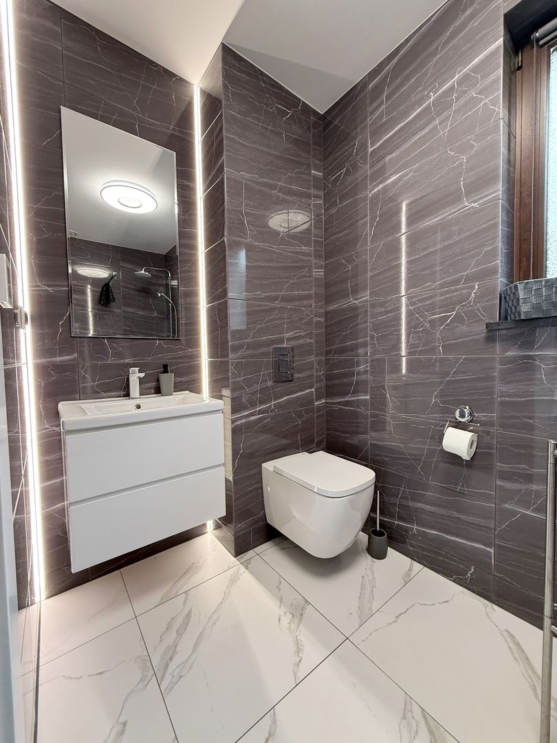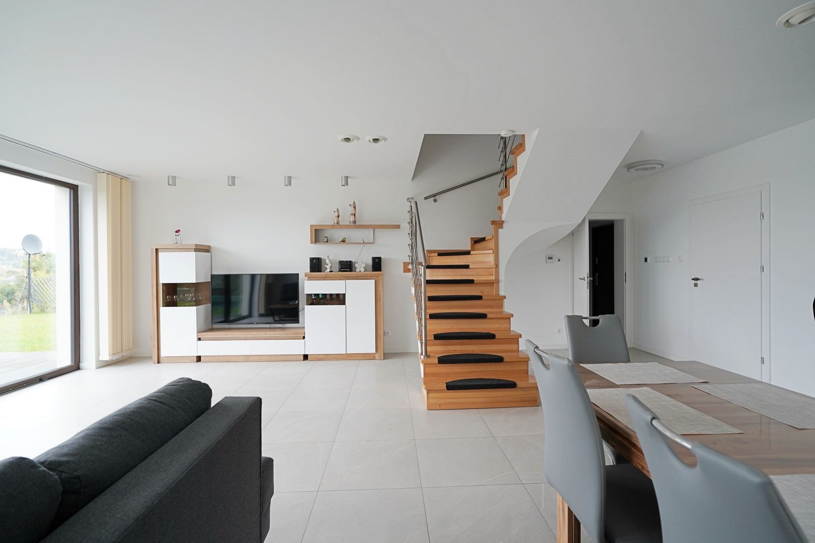 Nowoczesne ogrzewanie - pompa ciepła z rekuperacją i klimatyzacją plus elektryczne podłogowe na parterze i w łazienkach.