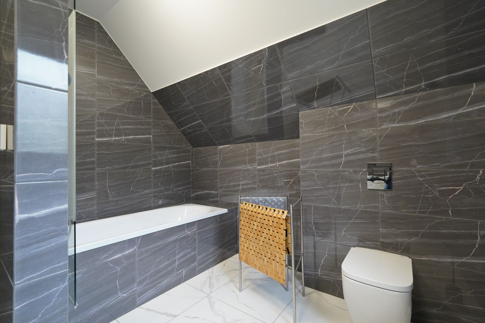 piętro - trzy sypialnie oraz łazienka z wanną.