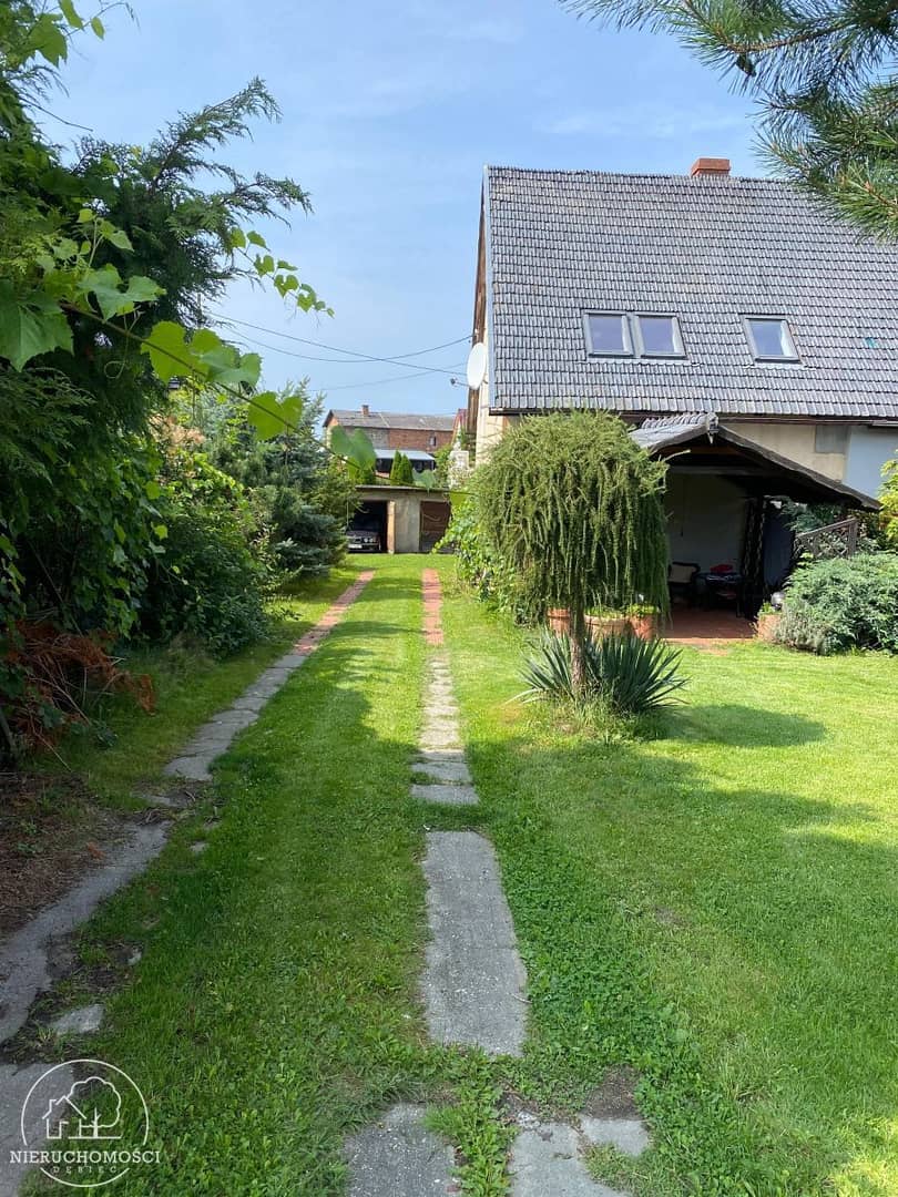 Do domu przynależy 1/2 działki o łącznej powierzchni 1600m2 , oraz dodatkowo działka sąsiadująca z posesją o powierzchni 500m2 na osobnej KW.