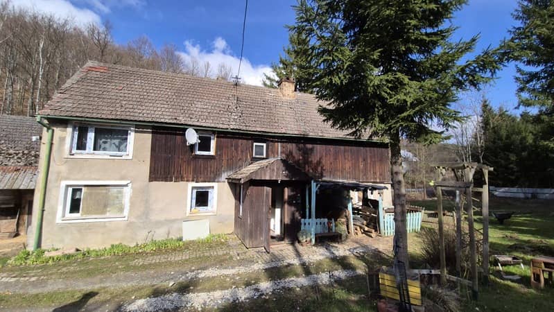 Dom wiejski w gminie Jeżów Sudecki, do remontu. Dwie działki budowlane 1492 i 1000 m2 o łącznej powierzchni 2491 m2. 5-pokoi, kuchnia, łazienka, CO- paliwo stałe, piwnica 8 m2, drewniana stodoła z kanałem do naprawy samochodów. Woda ze studni, szambo. Droga asfaltowa. 260.000,-
