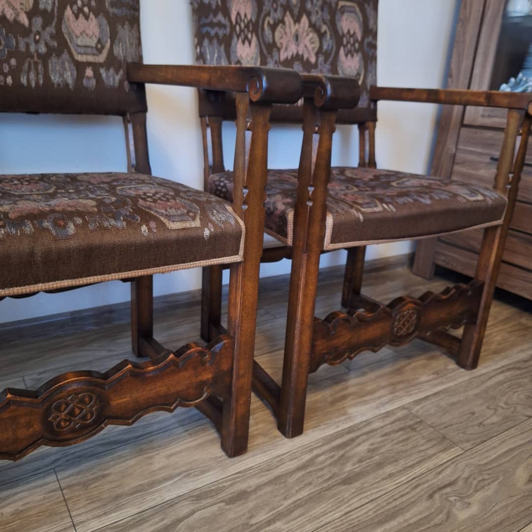 Dwa stylowe dębowe krzesła, rzeźbione, w dobrym stanie bez uszczerbień w drewnie, bez plam na tapicerce . Krzesła te są trwałe i wytrzymałe, bardzo wygodne. Możliwy transport lub odbiór osobisty. Cena za dwa 350 zł.