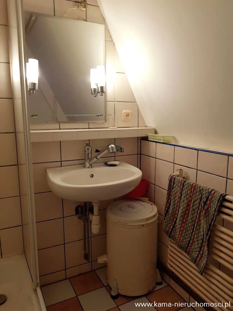 - łazienki z oknem, wyposażonej w prysznic i WC.