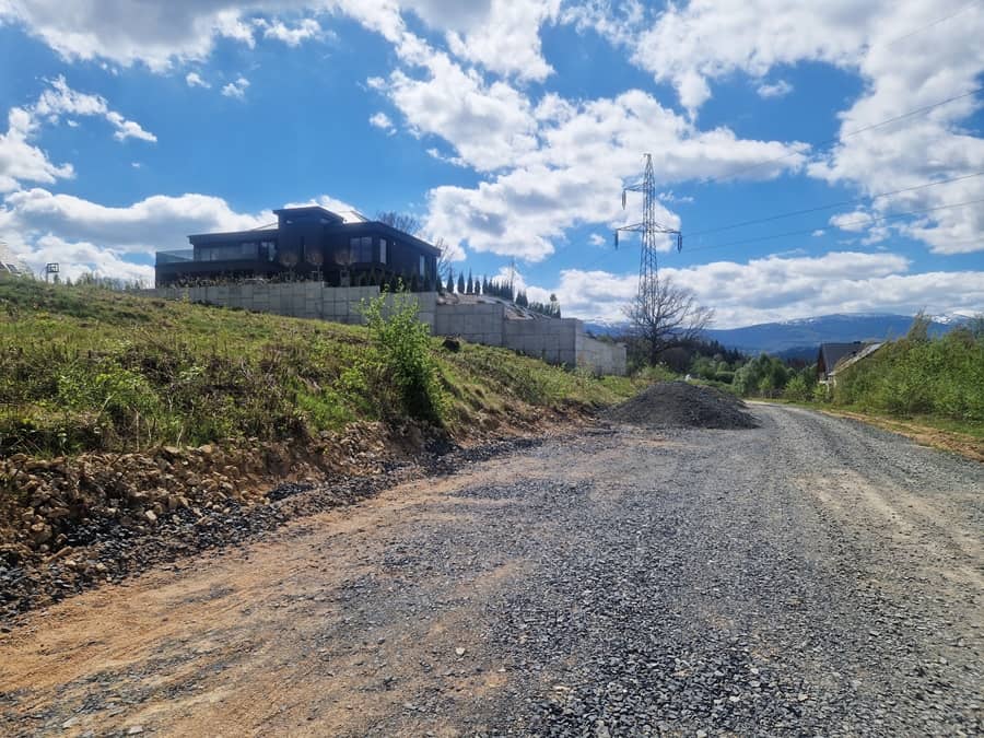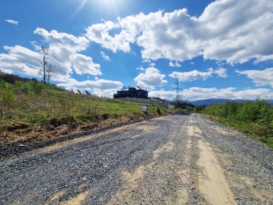 Działka prostokątna, teren pochyły, dobrze nasłoneczniona z widokiem na góry.