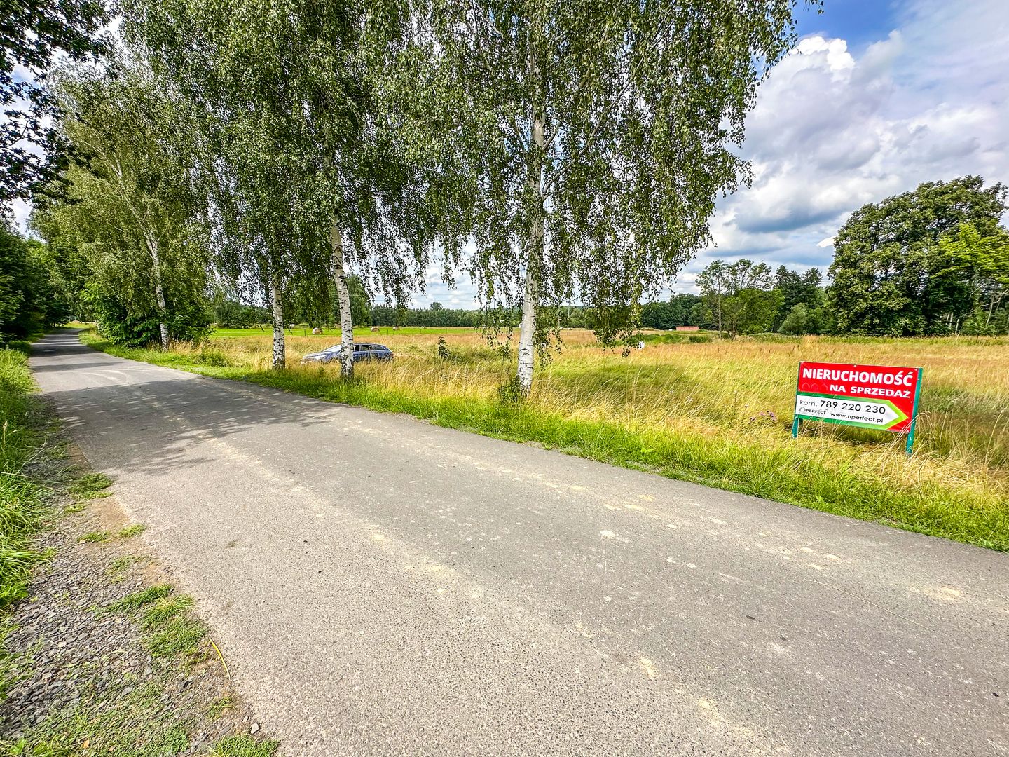 Teren działki jest płaski, czysty i dobrze nasłoneczniony, co czyni go idealnym miejscem pod dom całoroczny lub letniskowy. Pry granicy działki rosną brzózki, które dodają miejsca uroku.