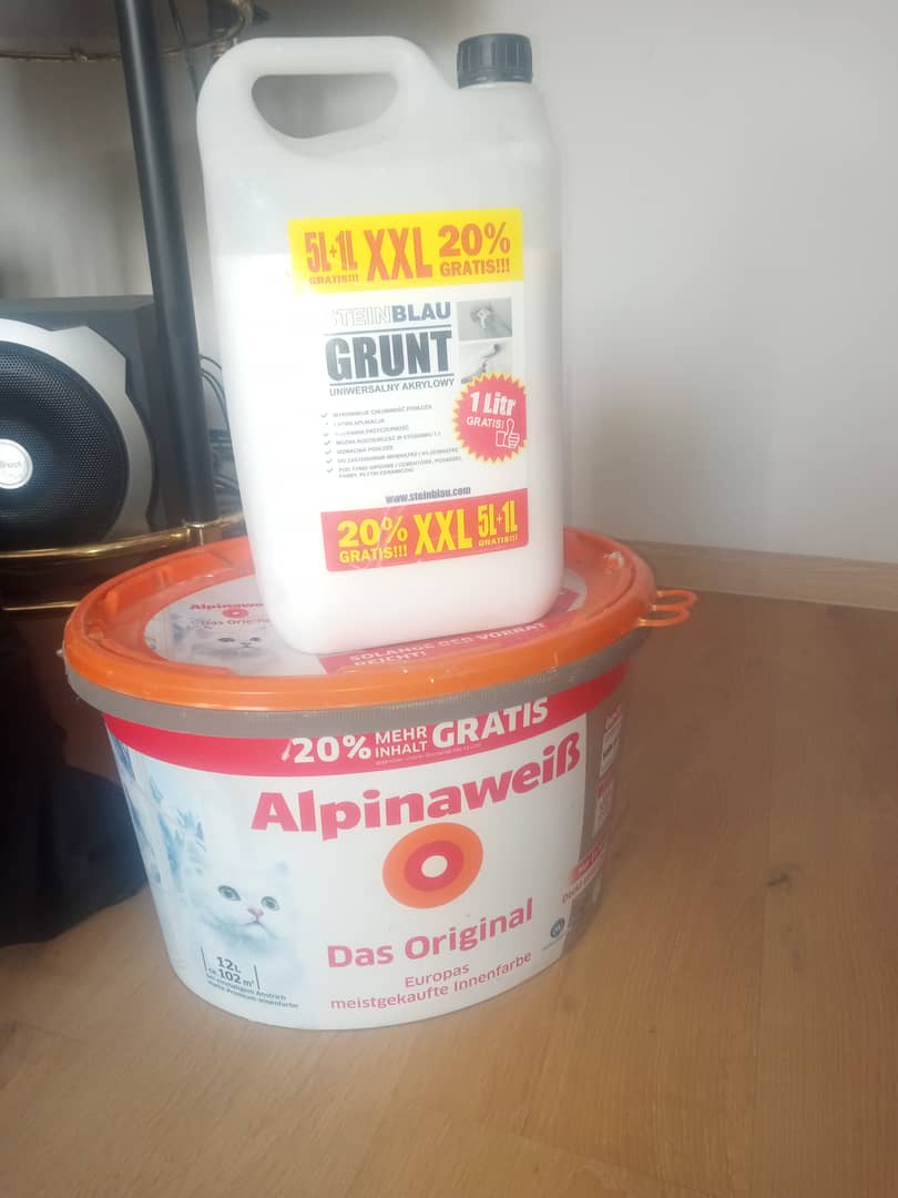 Witam sprzedam farbę pozostałości po remoncie+ grunt gratis cena 100 złotych odbiór w centrum Jeleniej Góry Pozdrawiam