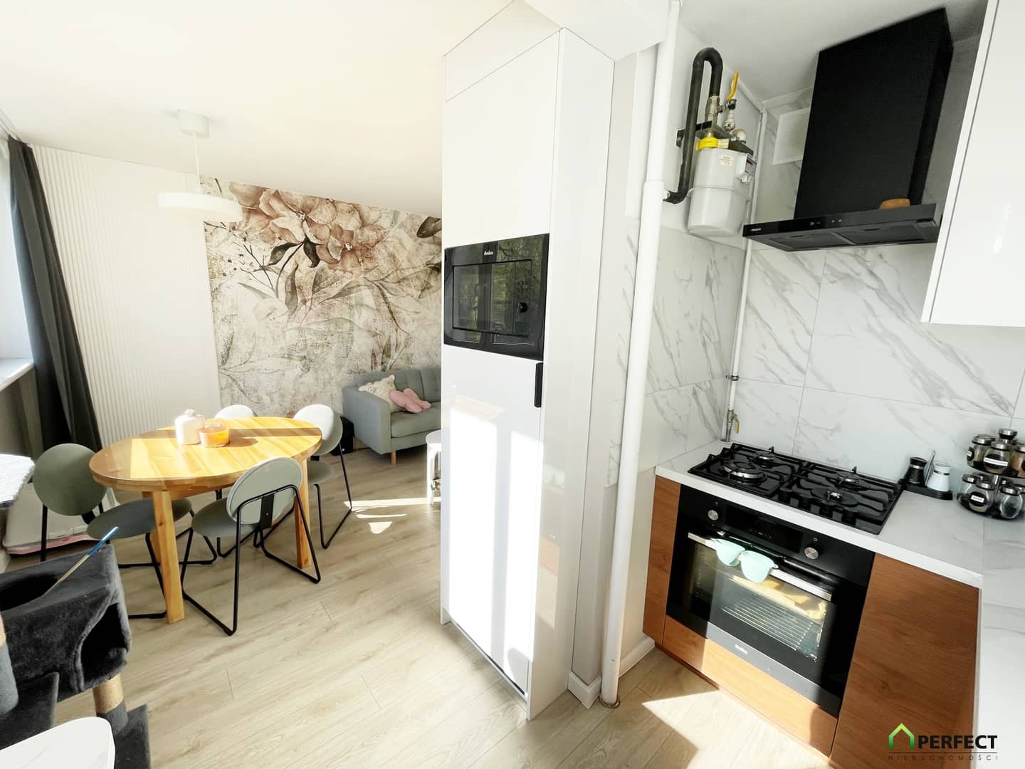 Remont został wykonany zgodnie z projektem architektonicznym, dzięki czemu mieszkanie zostało umeblowane i wyposażone w sposób nowoczesny i bardzo funkcjonalny.