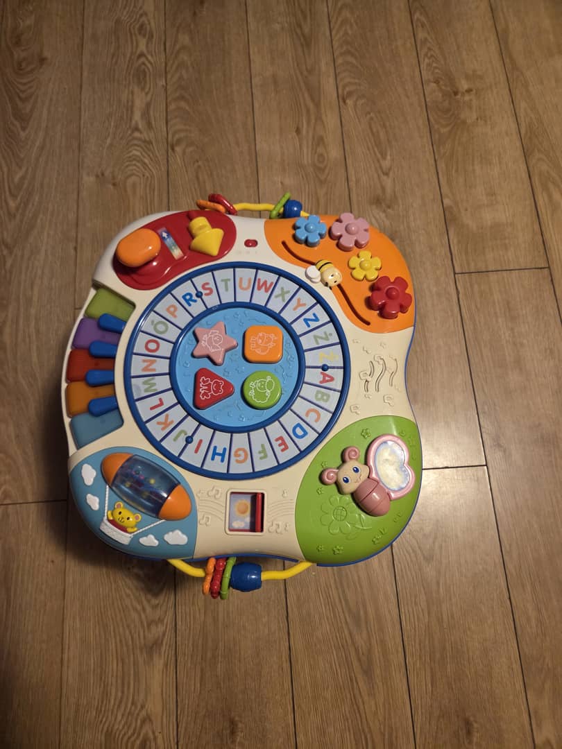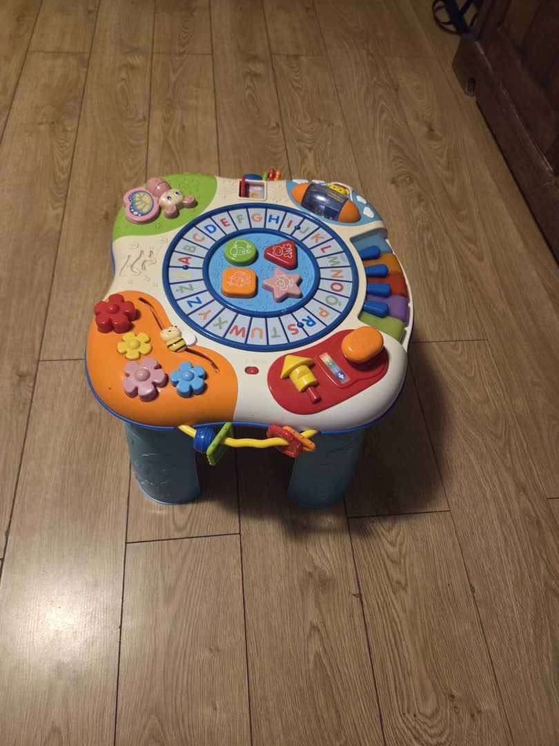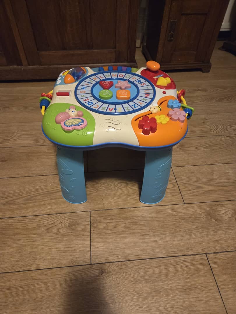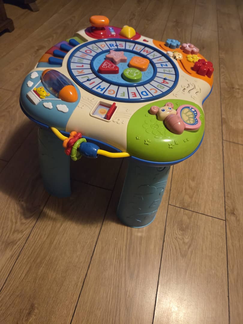 Sprzedam za symboliczną złotówkę edukacyjny stoliczek dla dzieci. Zdejmowany górny panel dla młodszych dzieci. Wszystkie funkcje działają, stan wizualny oceniam na dobry. Oferta ważna do poniedziałku wieczorem.