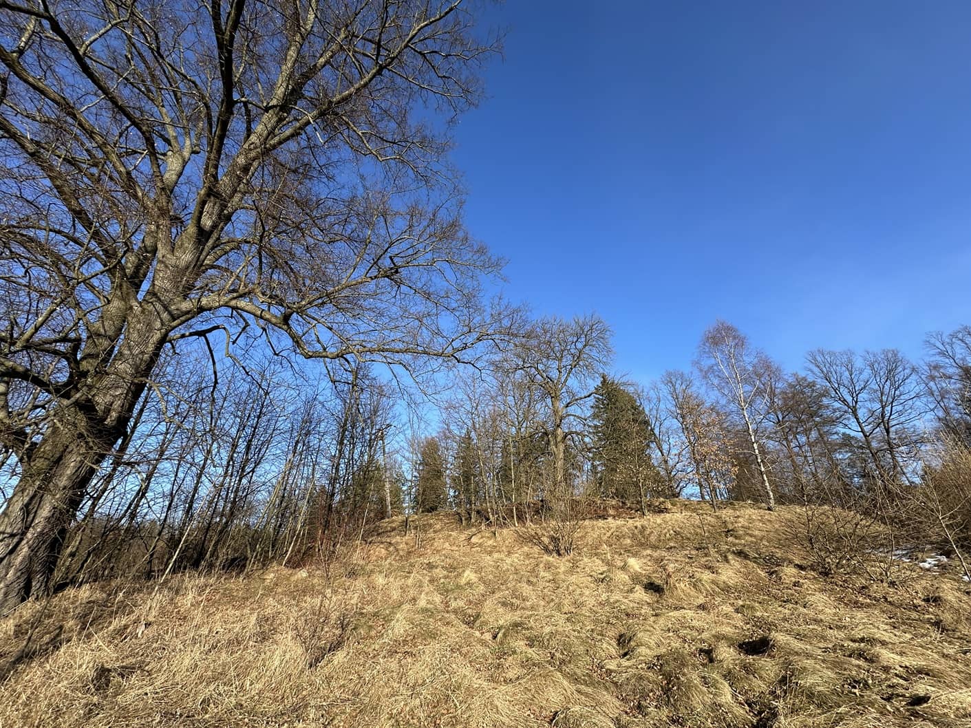 Zaraz przy działce znajduje się las a poniżej działki kilka domów (których nie widać gdy teren się zazieleni.