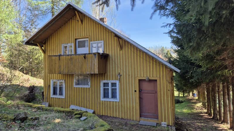 Dom wiejski w gminie Jeżów Sudecki, do remontu. Dwie działki budowlane 1492 i 1000 m2 o łącznej powierzchni 2491 m2. 5-pokoi, kuchnia, łazienka, CO- paliwo stałe, piwnica 8 m2, drewniana stod