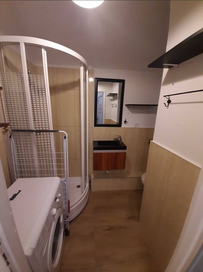 Mieszkanie: duży salon z aneksem kuchennym, duży przedpokój, łazienka, Na wyposażeniu szafa, komoda, narożnik z funkcją spania, fotel jednoosobowy do spania, komoda, meble kuchenne, zmywarka, k
