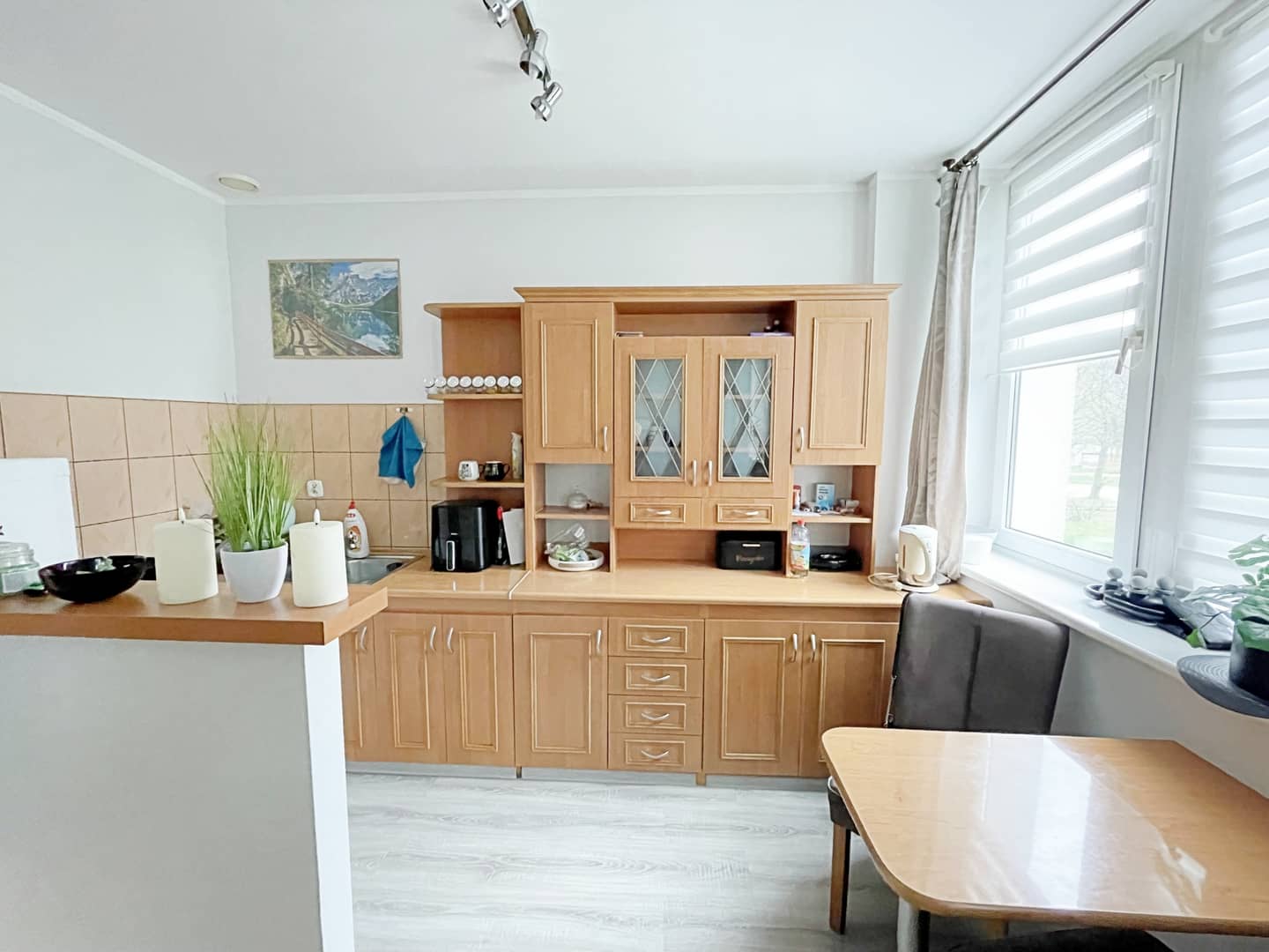 Mieszkanie nie wymaga nakładów finansowych, jedynie do odświeżenia, okna pcv, na podłogach panele i kafelki. Ogrzewanie oraz ciepła woda z sieci lokalnej. Na życzenie możliwość pozostawienia części umeblowania.